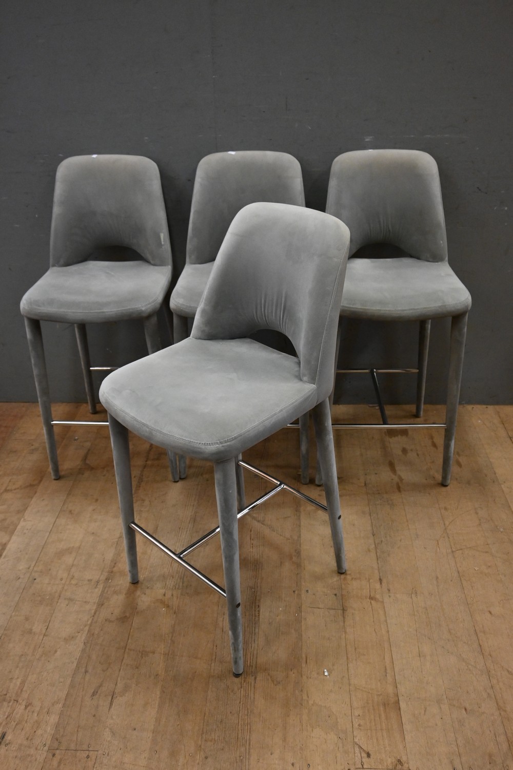 A SET OF FOUR CONTEMPORARY STOOLS (A/F) (H95 X W41 X D50 CM) (LEONARD JOEL DELIVERY SIZE: LARGE)