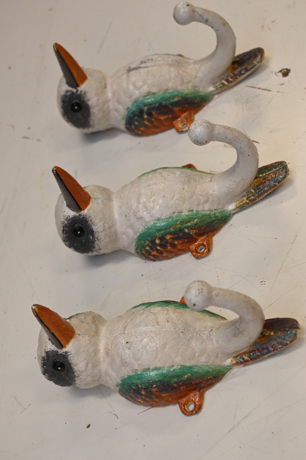 A SET OF THREE KOOKABURRA COAT HOOKS (16H CM) (LEONARD JOEL DELIVERY SIZE: SMALL)