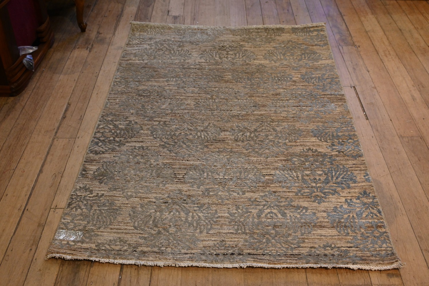 A CONTEMPORARY 100% WOOL, ALL HAND KNOTTED RUG IN CREAM TONES (193 X 125 CM)