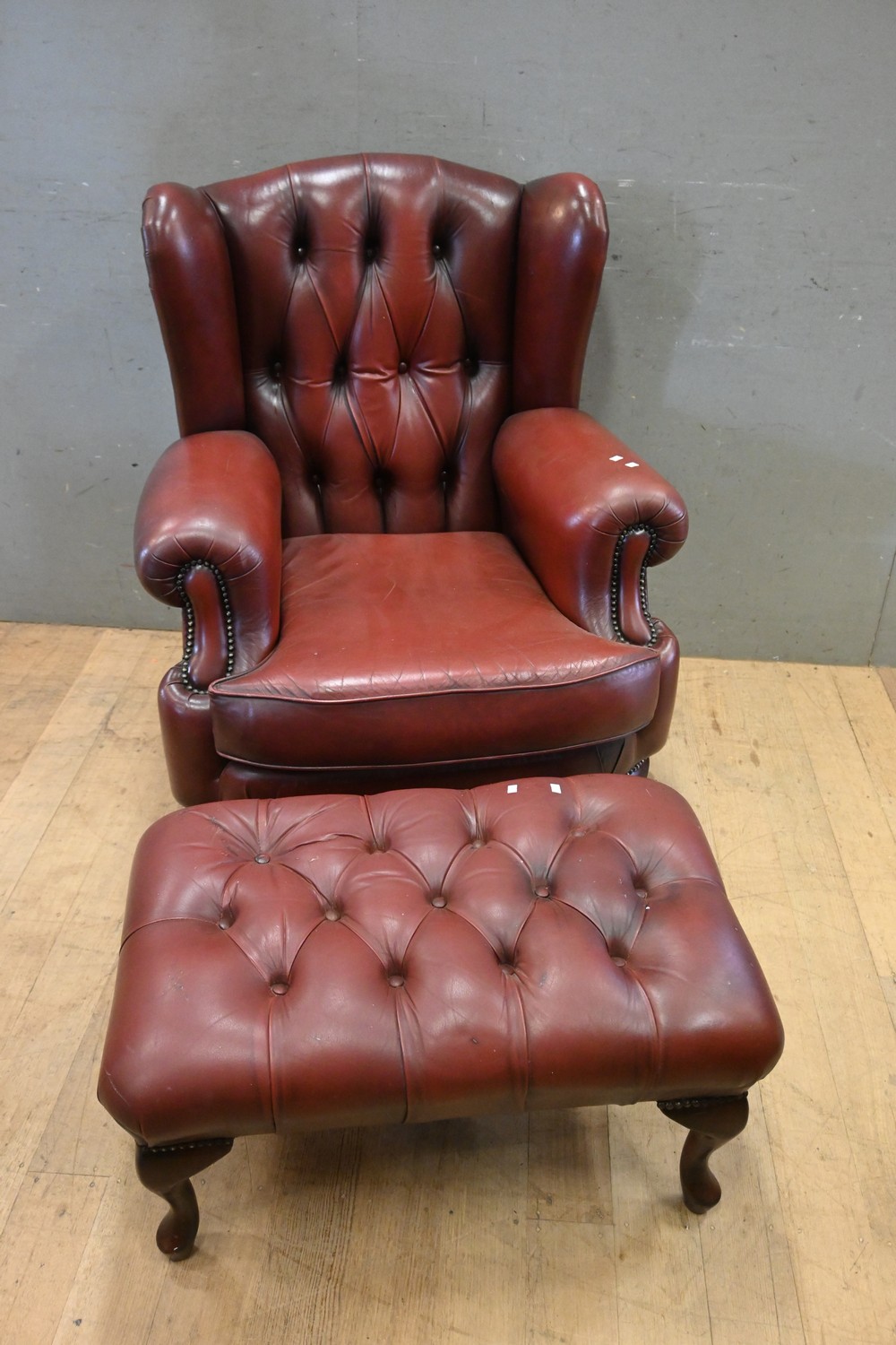 A BUTTON BACK ARMCHAIR AND OTTOMAN (A/F) ( 104H X 82W X 87D CM) (LEONARD JOEL DELIVERY SIZE: X-LARGE)