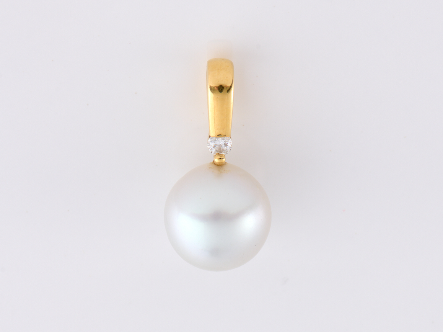 A SOUTH SEA PEARL AND DIAMOND PENDANT IN 18CT GOLD, THE PEARL DIAMETER10MM, LENGTH INCL BAIL 20MM