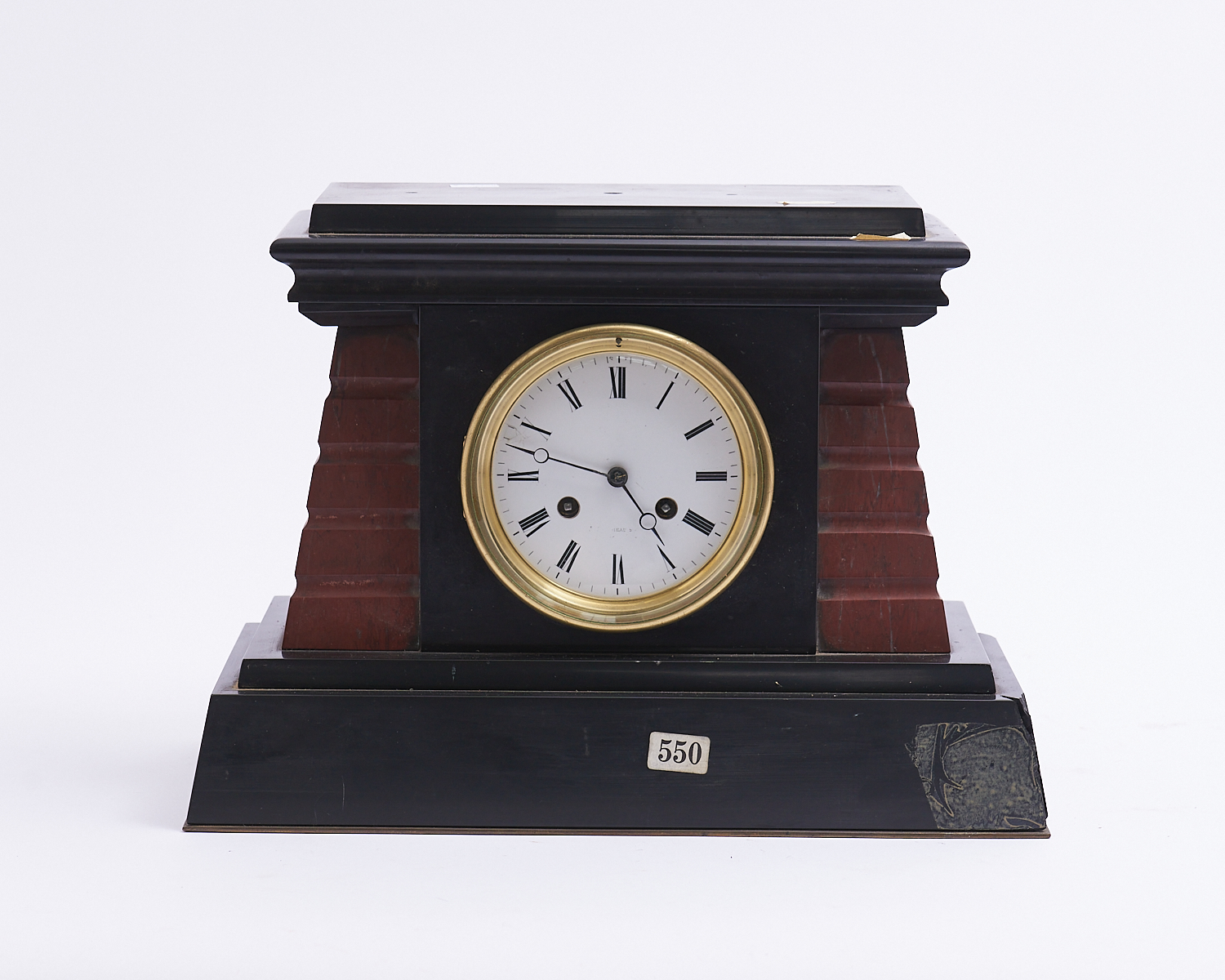 A JAMES MUIRHEAD GLASGOW BLACK MARBLE CLOCK (A/F) H.26CM X W.36CM, LEONARD JOEL LOCAL DELIVERY: MEDIUM