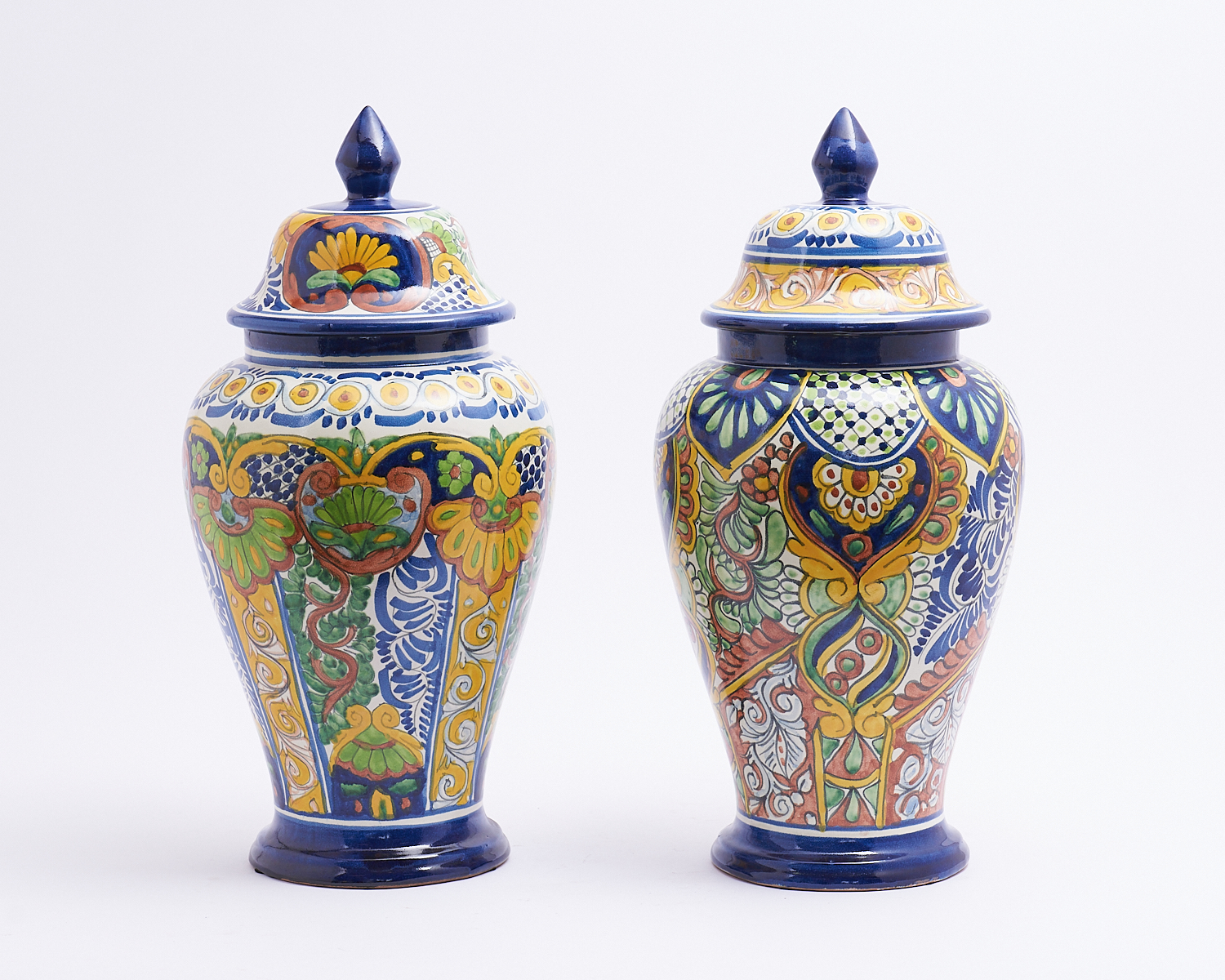 A PAIR OF MEXICAN TERRACOTTA LIDDED VASES H.50CM, LEONARD JOEL LOCAL DELIVERY: MEDIUM