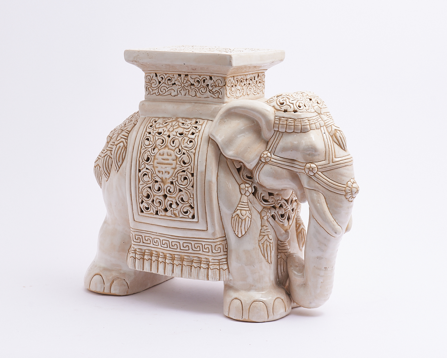 A CERAMIC ELEPHANT FORM STOOL H.44CM X W.51CM, LEONARD JOEL LOCAL DELIVERY: MEDIUM