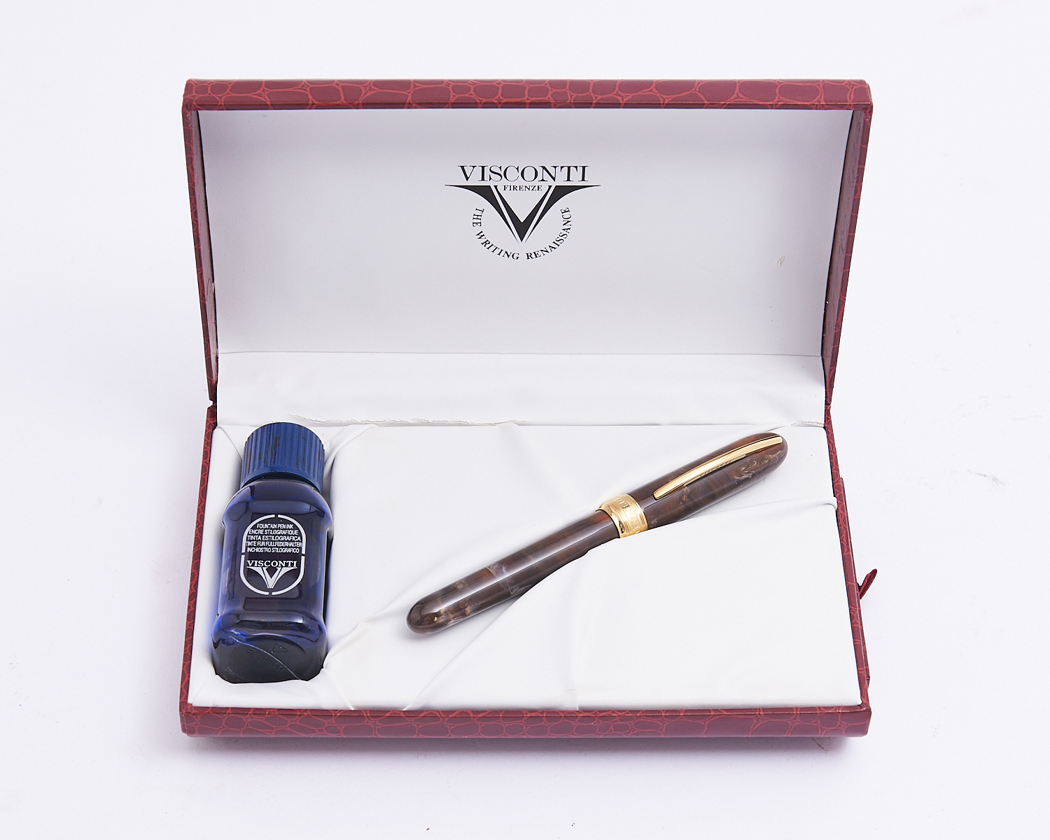 A VISCONTI 14K GOLD NIB FOUNTAIN PEN TOGETHER WITH INK IN PRESENTATION BOX, LEONARD JOEL LOCAL DELIVERY: SMALL