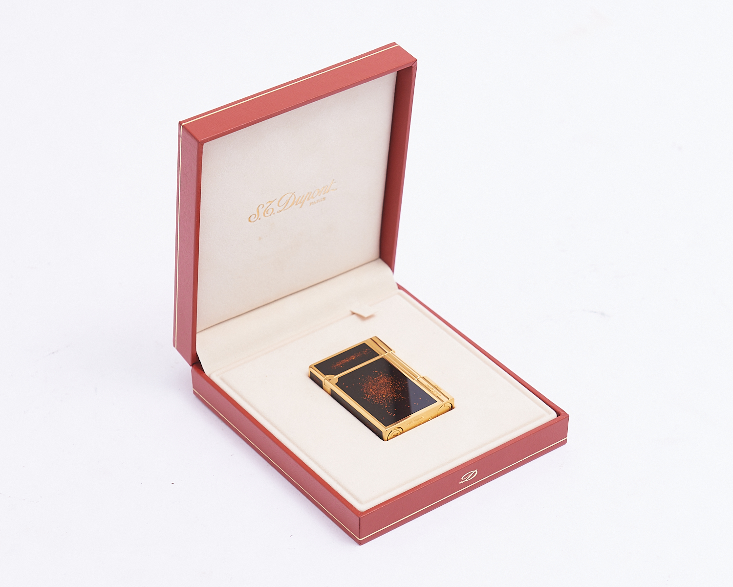 A DUPONT GOLD PLATED LAQUE DE CHINE LIGHTER IN PRESENTATION BOX, LEONARD JOEL LOCAL DELIVERY: SMALL
