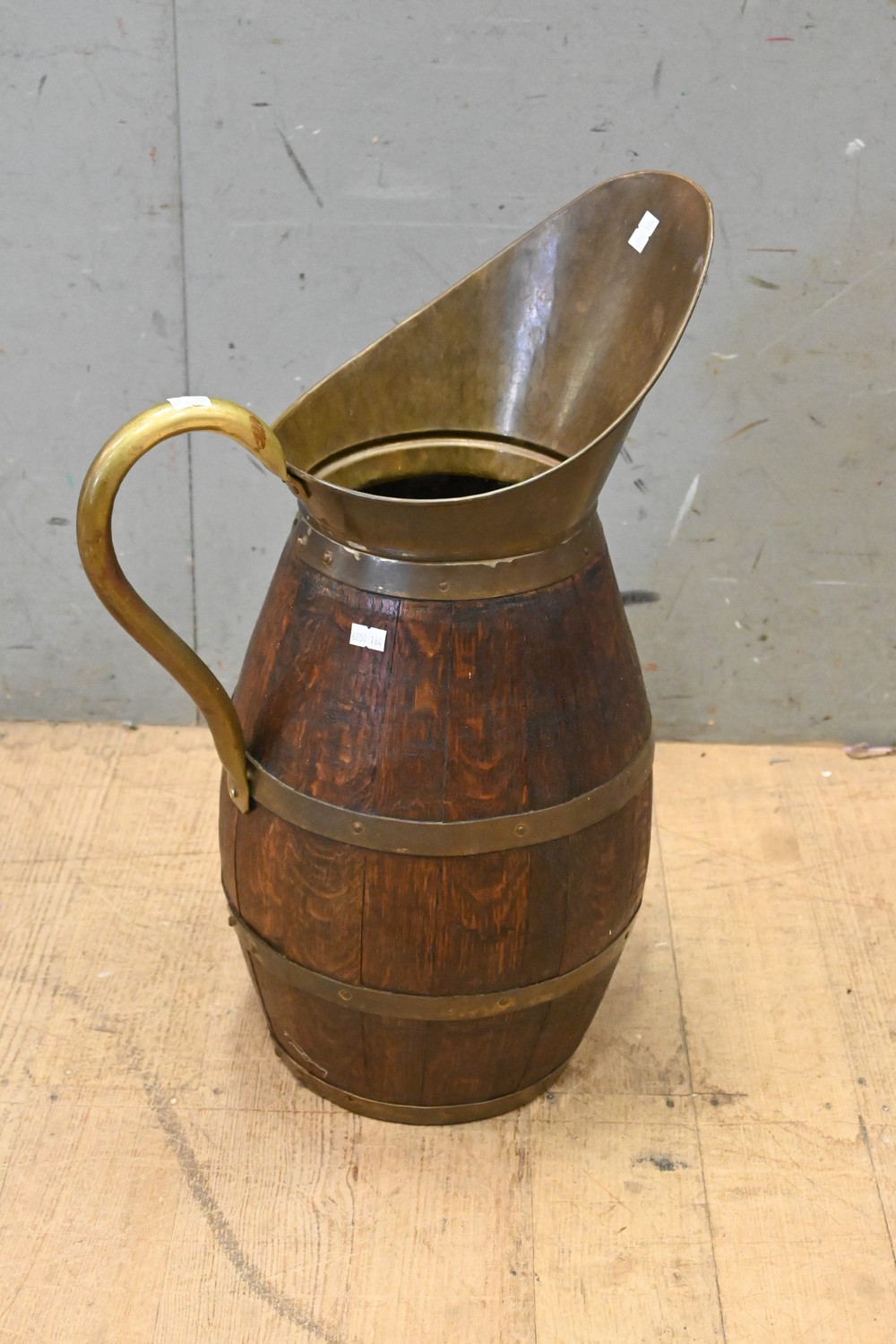 A FRENCH COOPERED OAK AND BRASS BOUND TAVERN JUG (57H CM) (LEONARD JOEL DELIVERY SIZE: MEDIUM)