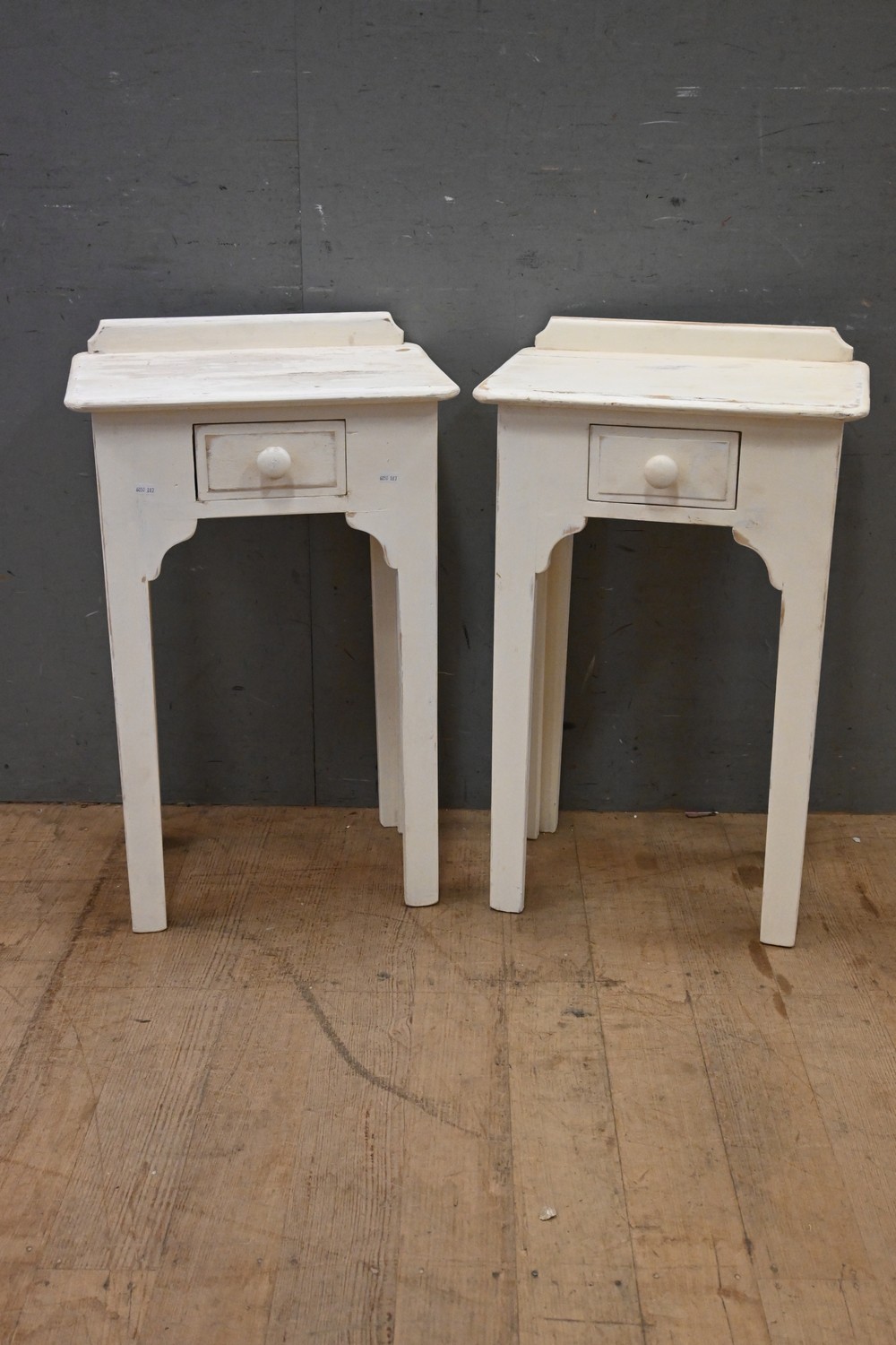 APAIR OF OAK WHITE PAINTED SINGLE DRAWER SIDE TABLES (A/F) (71H X 44W X 30D CM) (LEONARD JOEL DELIVERY SIZE: LARGE)