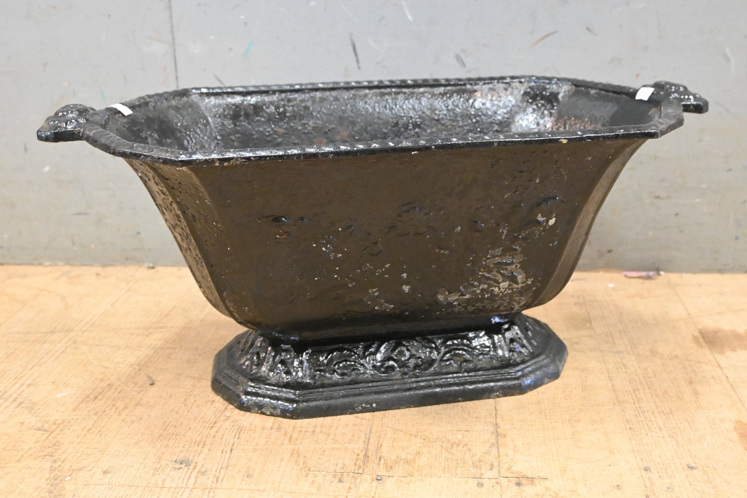 A 19TH CENTURY FRENCH BLACK CAST IRON PLANTER POT (26H X 58W X 31D CM) (LEONARD JOEL DELIVERY SIZE: LARGE)
