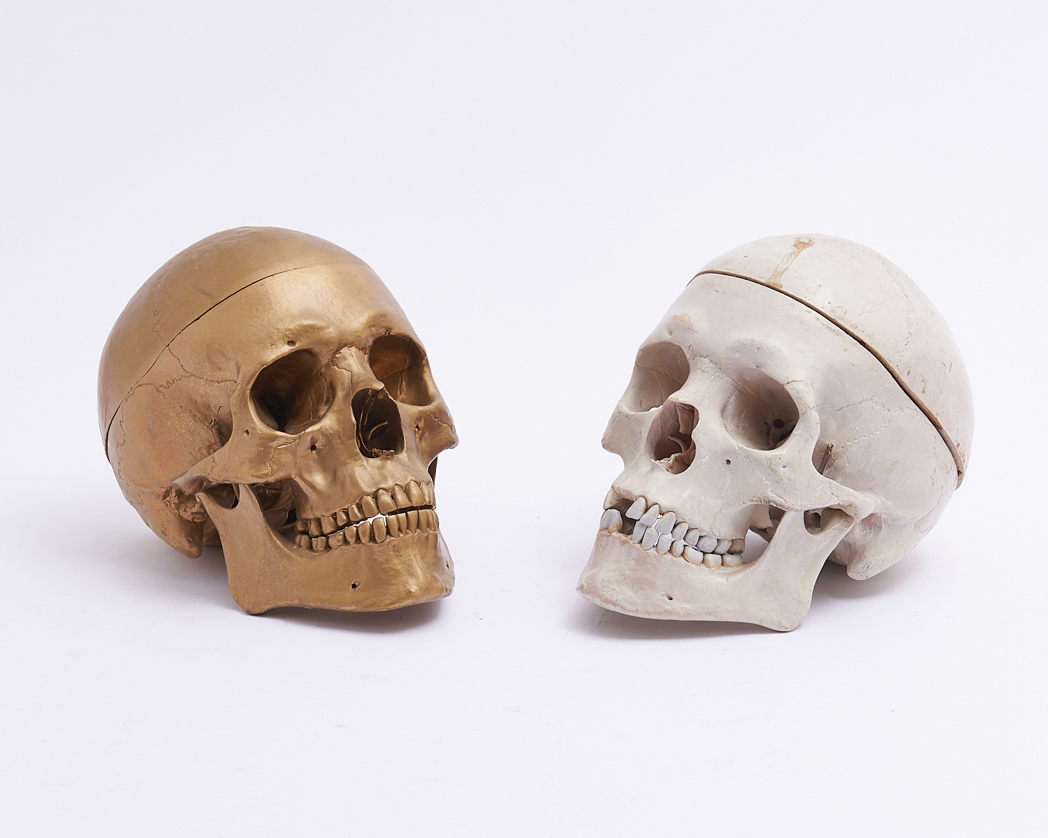 TWO VINTAGE MODEL SKULLS H.17CM, LEONARD JOEL LOCAL DELIVERY: SMALL