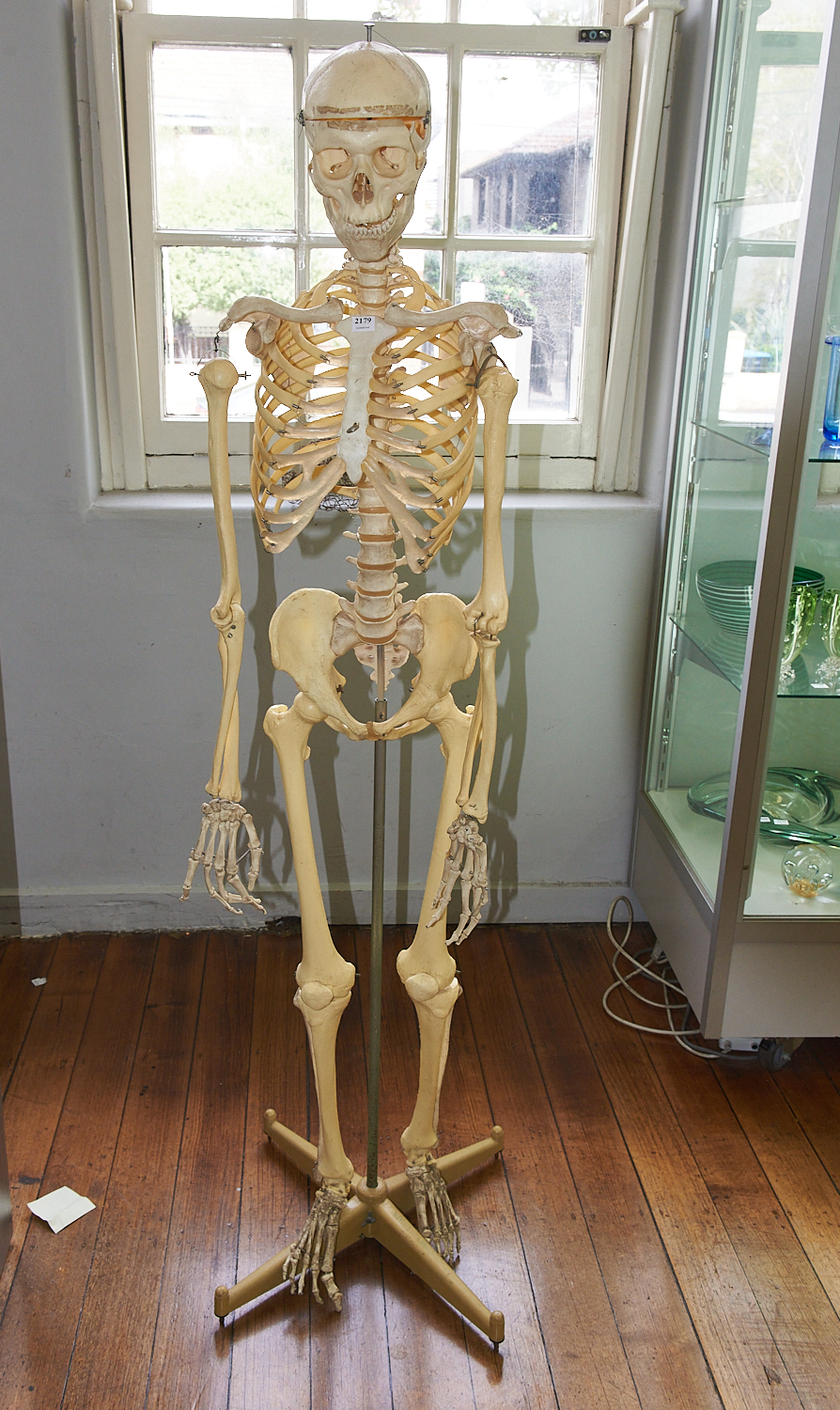 A VINTAGE TEACHING MODEL HUMAN SKELETON ON STAND (A/F) H.166CM, LEONARD JOEL LOCAL DELIVERY: MEDIUM