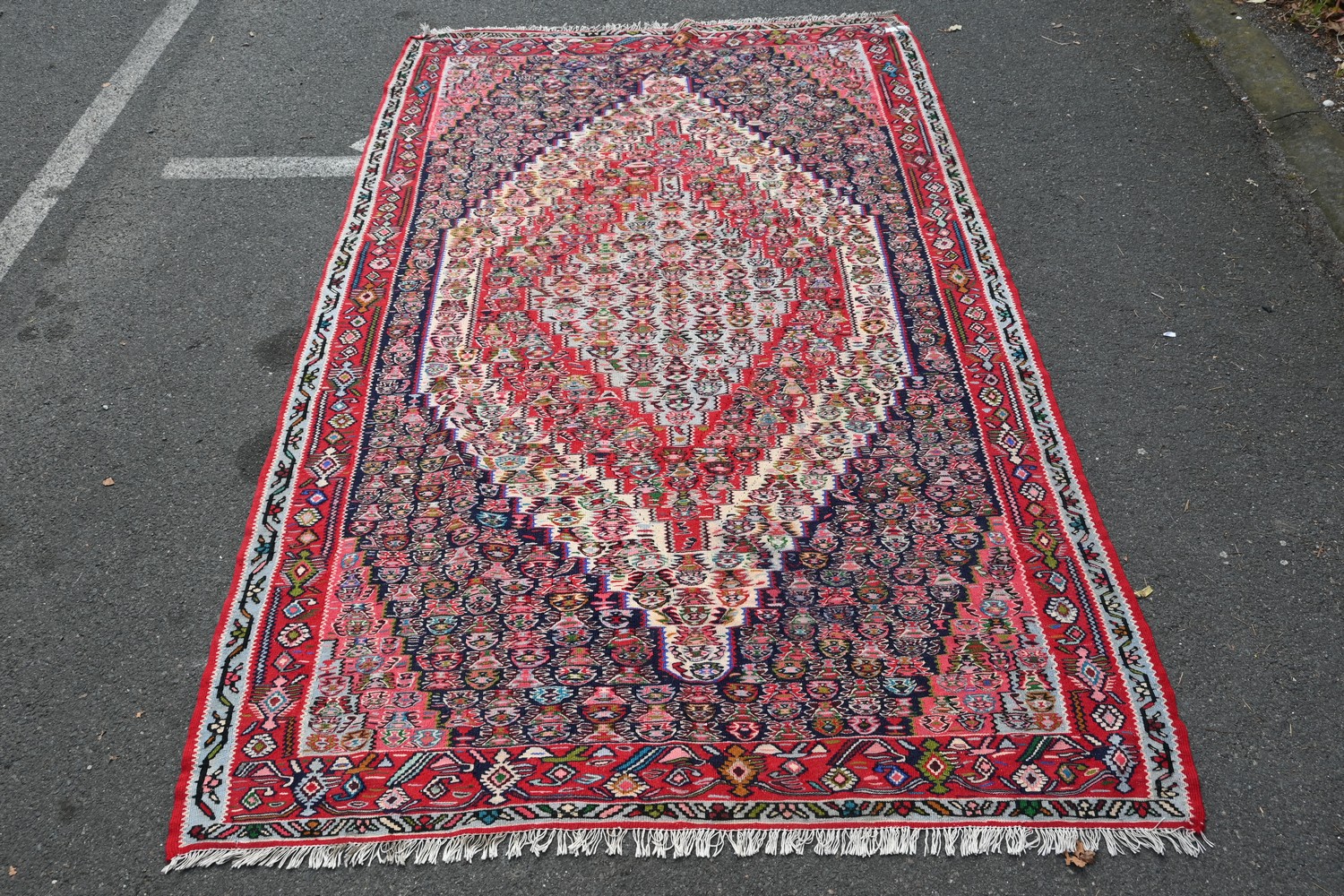 A RARE PURE WOOL DOUBLE SIDED SOMAK HAND KNOTTED AFGHAN RUG (A/F) (265 X 154 CM) (LEONARD JOEL DELIVERY SIZE: X-LARGE)