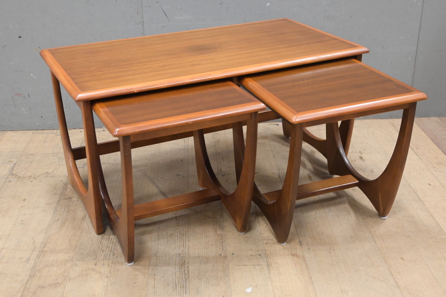 A NEST OF THREE KALMAR TABLES (A/F) (48H X 94W X 51D CM) (LEONARD JOEL DELIVERY SIZE: LARGE)