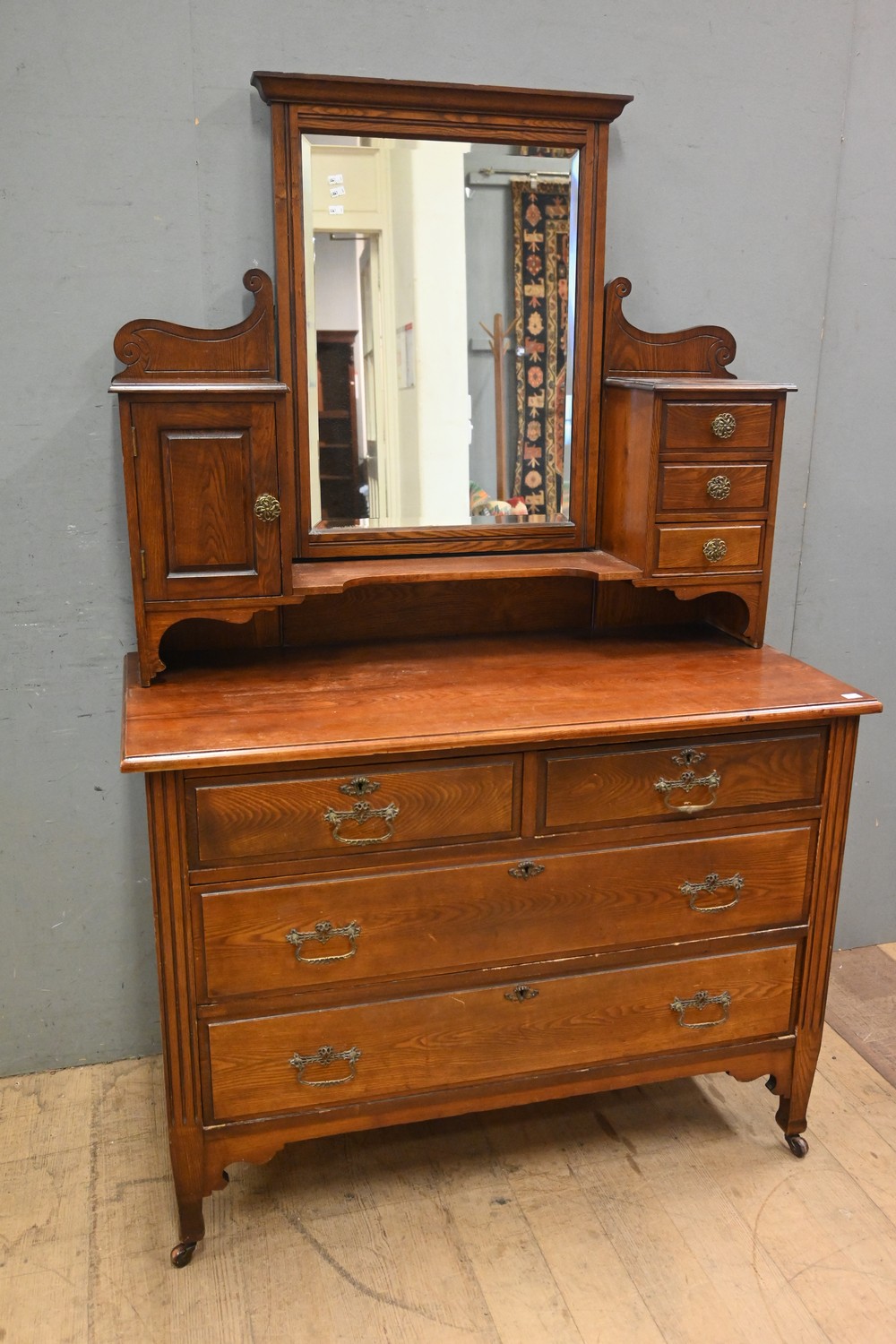 AN EARLY 20th CENTURY OAK DRESSING CHEST (A/F) (165H X 107W X 50D CM) (LEONARD JOEL DELIVERY SIZE: X-LARGE)