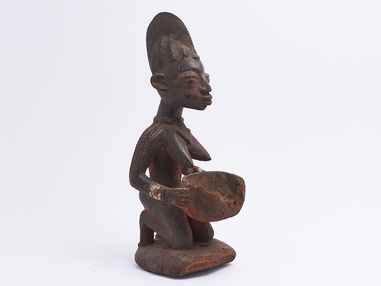 A YORUBA FIGURE WITH BOWL, NIGERIA H.54.5CM, LEONARD JOEL LOCAL DELIVERY: SMALL