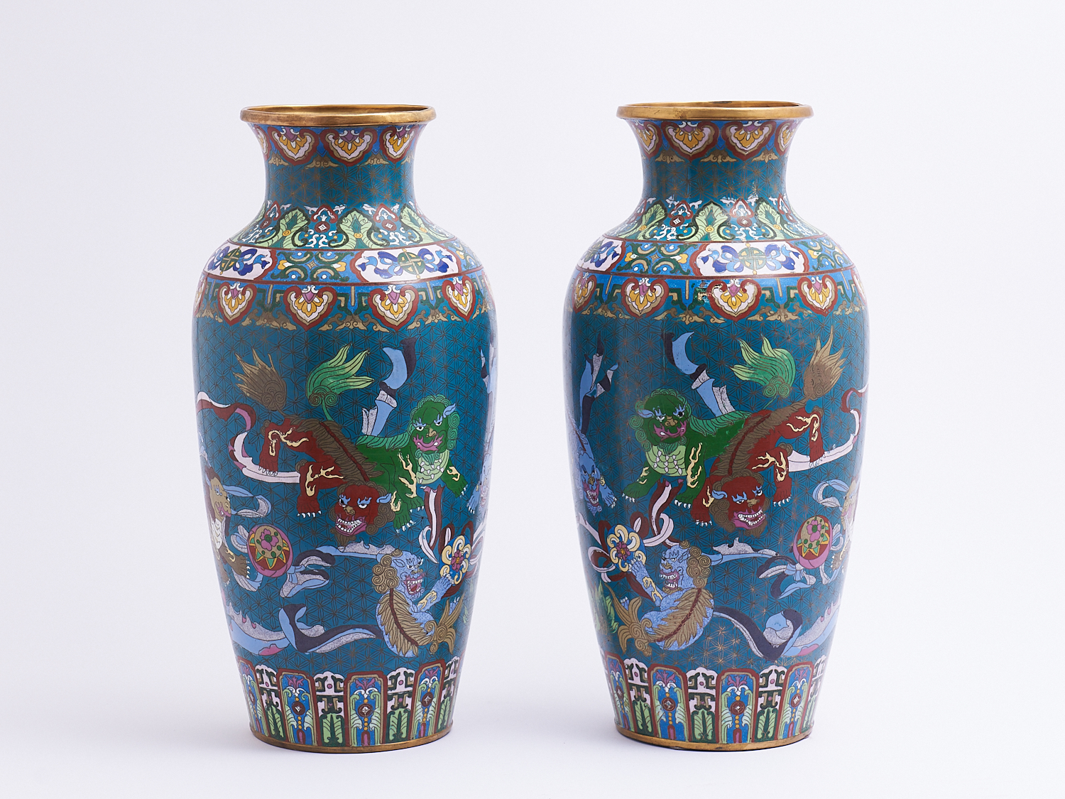 A PAIR OF CLOISONNE VASES H.53CM, LEONARD JOEL LOCAL DELIVERY: MEDIUM