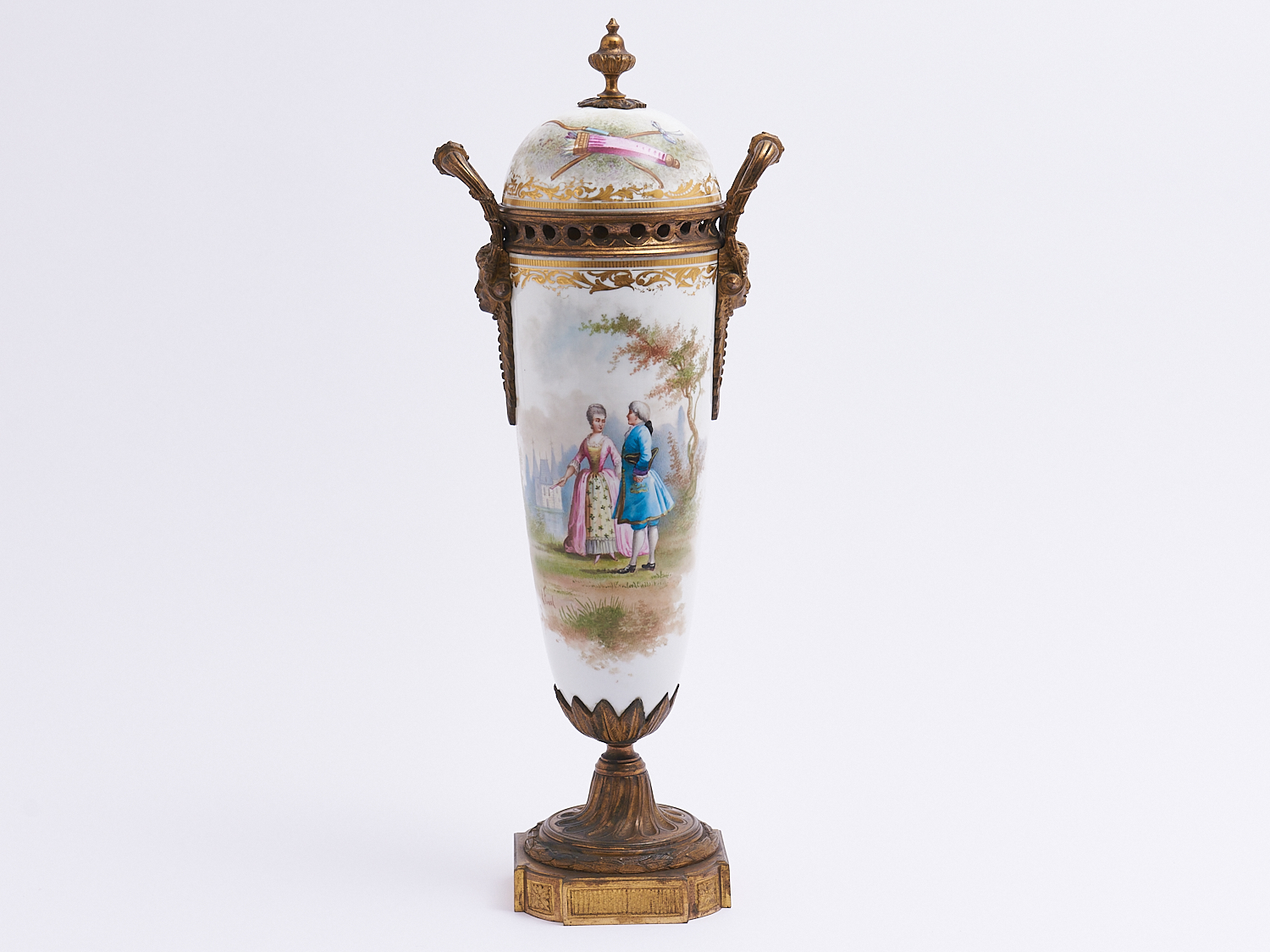 A SEVRES PORCELAIN VASE WITH HANDPAINTED FIGURAL SCENE AND BRONZE MOUNTS H.45CM, LEONARD JOEL LOCAL DELIVERY: MEDIUM
