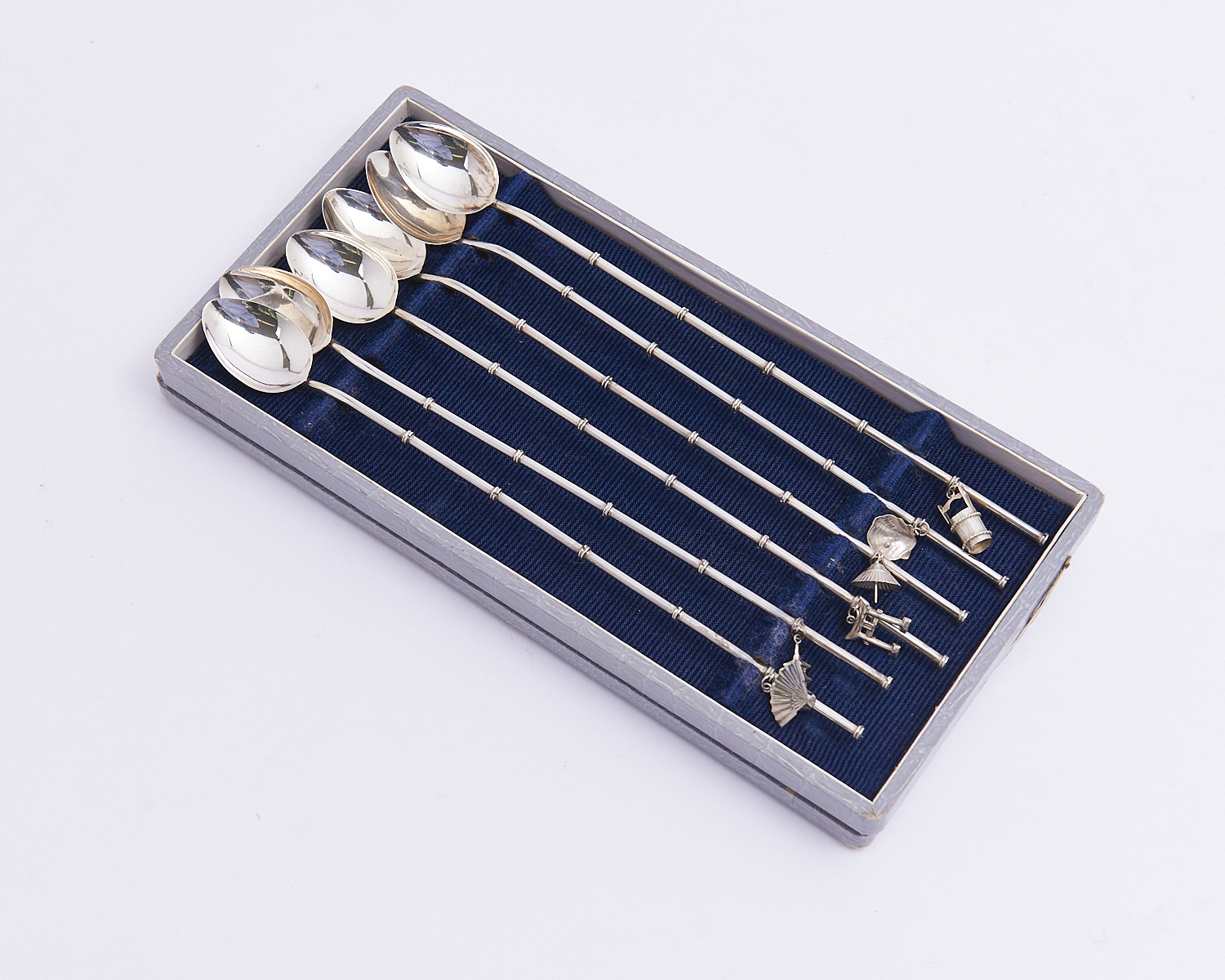 A SET OF SIX SILVER COCKTAIL SPOONS/STRAWS L.22CM, LEONARD JOEL LOCAL DELIVERY: SMALL