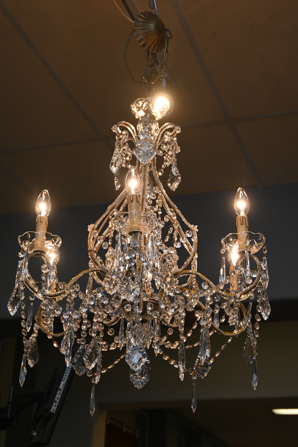 A SIX GLOBE ITALIAN 1960'S CRYSTAL CHANDELIER (100H X 68D CM) (LEONARD JOEL DELIVERY SIZE: LARGE)