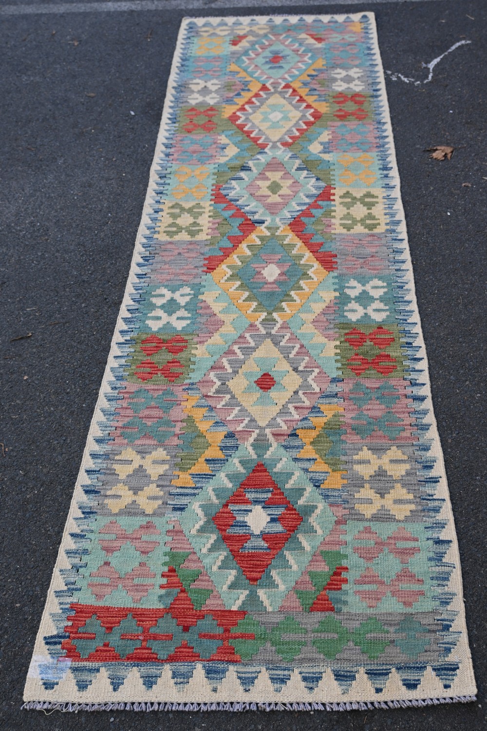 A KAZAK RUNNER, 100% WOOL ON WOOL, WITH VEGETABLE DYES IN CAUCASIAN DESIGN (310 X 80 CM) (LEONARD JOEL DELIVERY SIZE: LARGE)