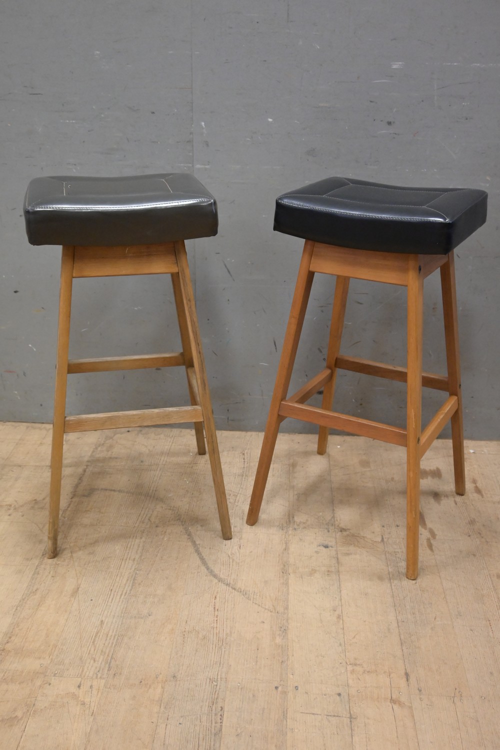 TWO T.H. BROWN VINYL TOP STOOLS (A/F) (76H X 37W X 34D CM) (LEONARD JOEL DELIVERY SIZE: LARGE)