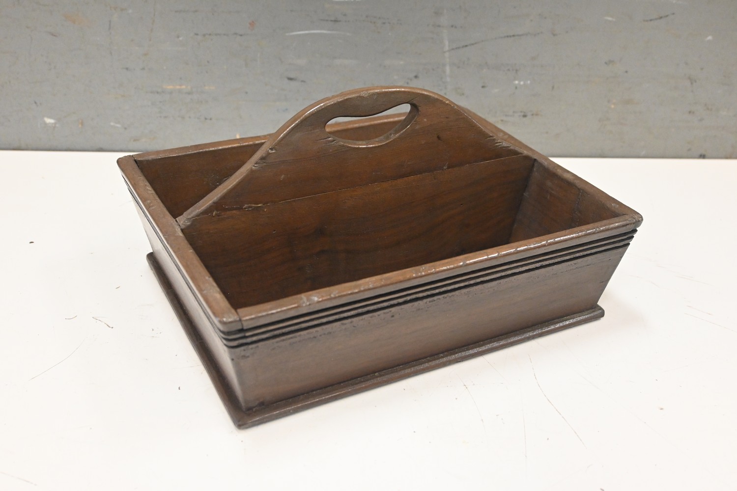 A WALNUT CUTLERY TRAY/DESK TIDY (22H X 30W X 23D CM) (LEONARD JOEL DELIVERY SIZE: MEDIUM)