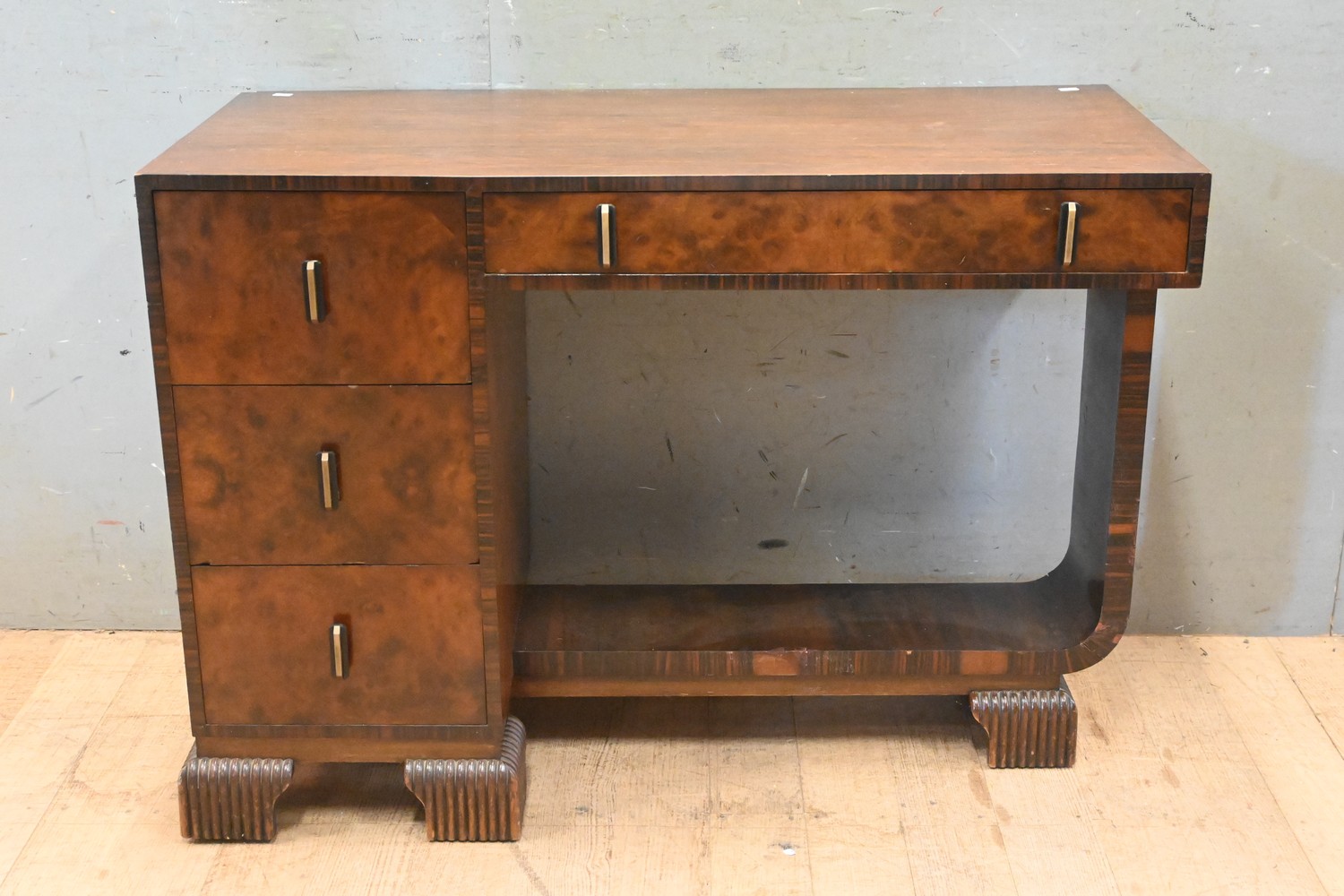 AN ART DECO FOUR DRAWER HOOP DESK ( A/F) ( 74H X 105W X 52D CM) (LEONARD JOEL DELIVERY SIZE: X- LARGE)