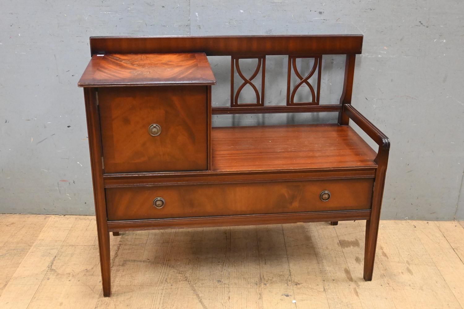 AN ART DECO WALNUT HALL SEAT (A/F) ( 78H X 96W X 43D CM) (LEONARD JOEL DELIVERY SIZE: LARGE)
