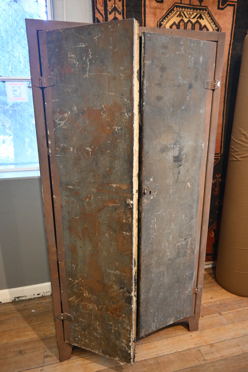 A SUBSTANTIAL FRENCH INDUSTRIAL TWO DOOR METAL CABINET (A/F) (176H X 90W X 41D CM) (PLEASE NOTE THIS HEAVY ITEM MUST BE REMOVED BY CARRIERS AT THE CUSTOMER'S EXPENSE. LEONARD JOEL STAFF CANNOT ASSIST CARRYING THIS ITEM) (X-LARGE ITEM)