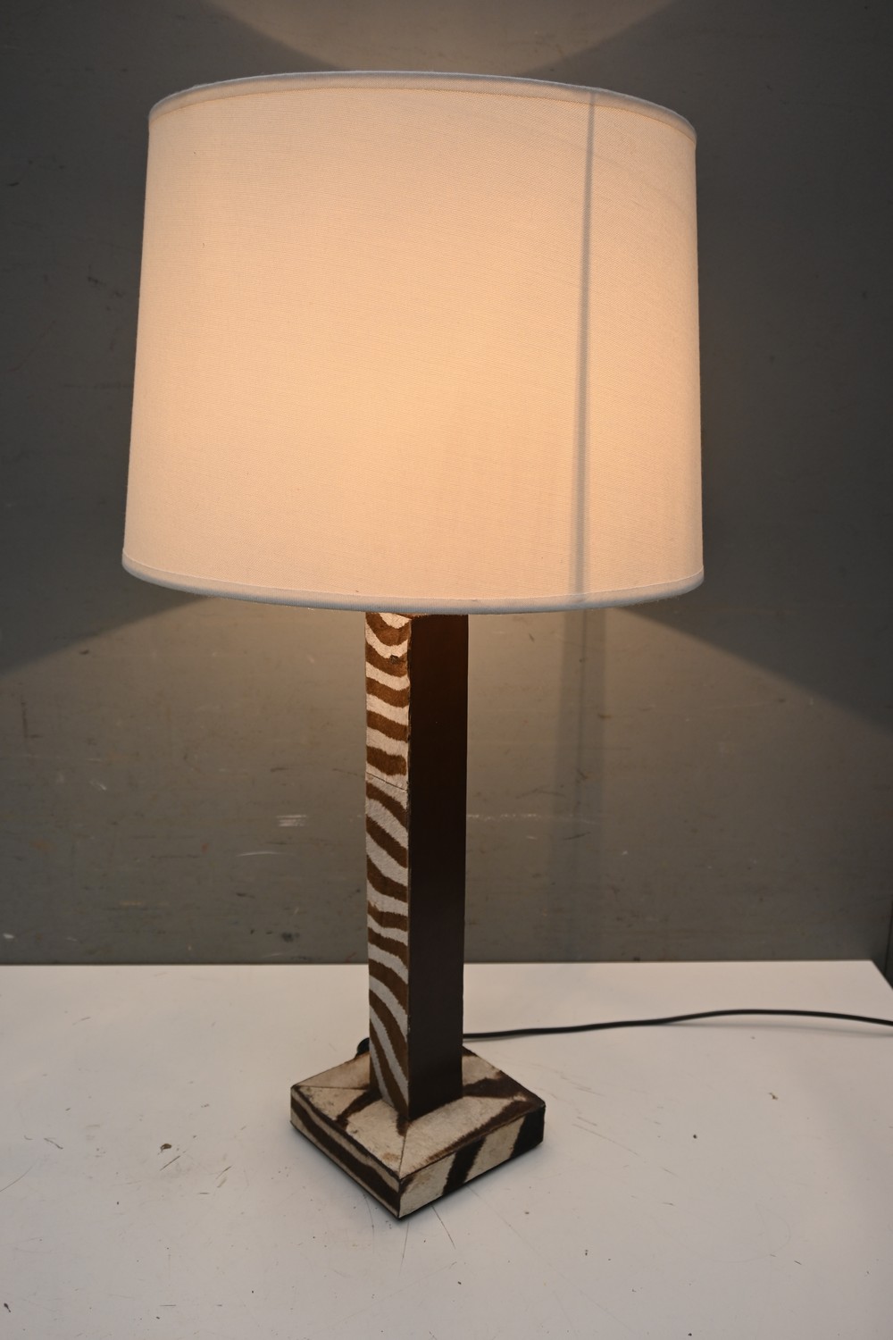 A LEATHER FINISHED TABLE LAMP (76H CM) (LEONARD JOEL DELIVERY SIZE: MEDIUM)