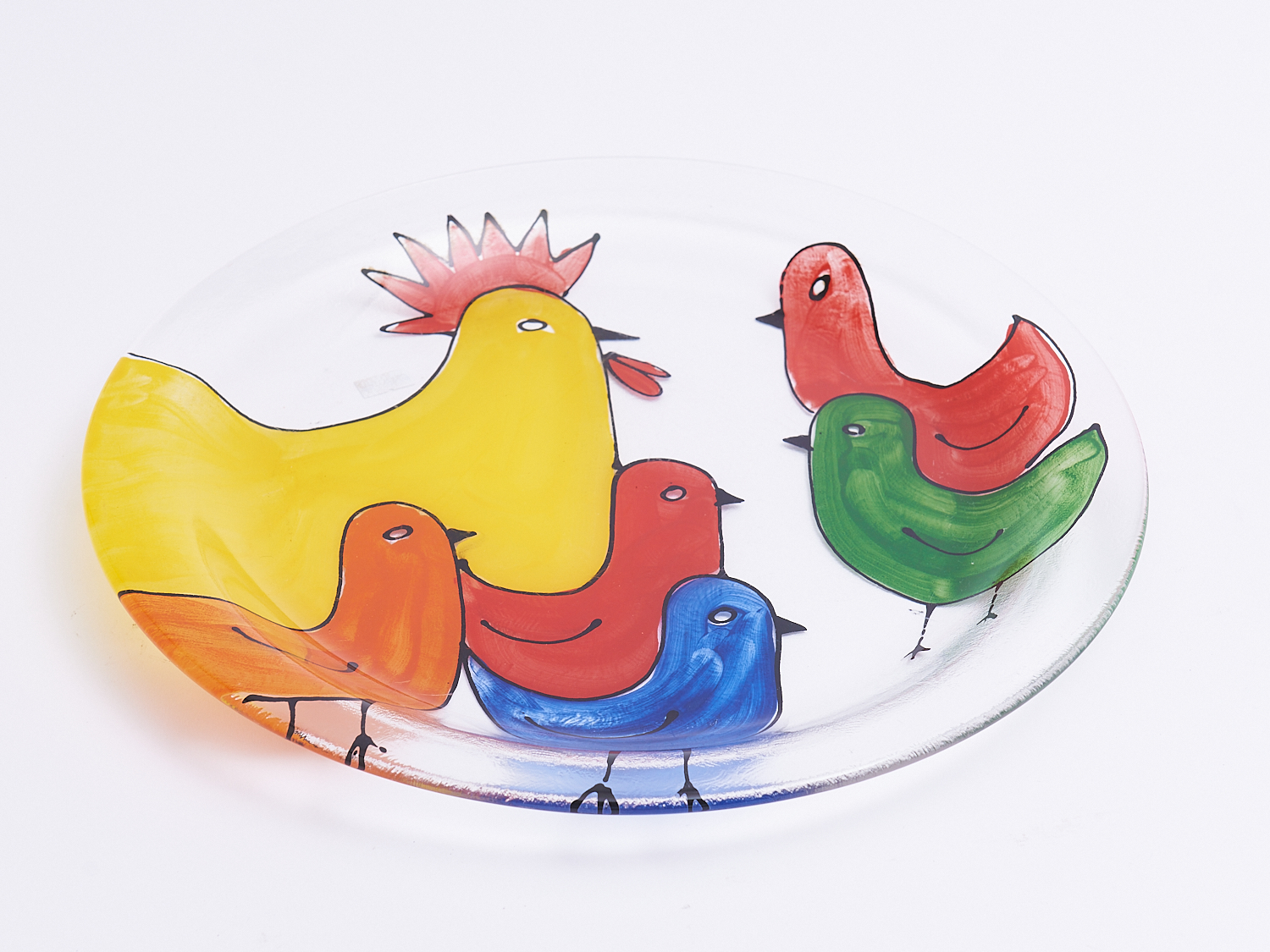 A KOSTA BODA HAND PAINTED CHICKEN AND ROOSTER CHARGER, DIA.38.5CM, LEONARD JOEL LOCAL DELIVERY: MEDIUM