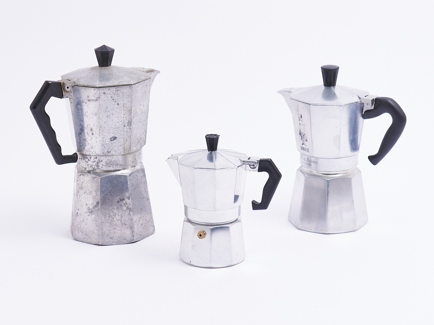 THREE VINTAGE ITALIAN ESPRESSO COFFEE MAKERS H.24.5CM (TALLEST), LEONARD JOEL LOCAL DELIVERY: SMALL