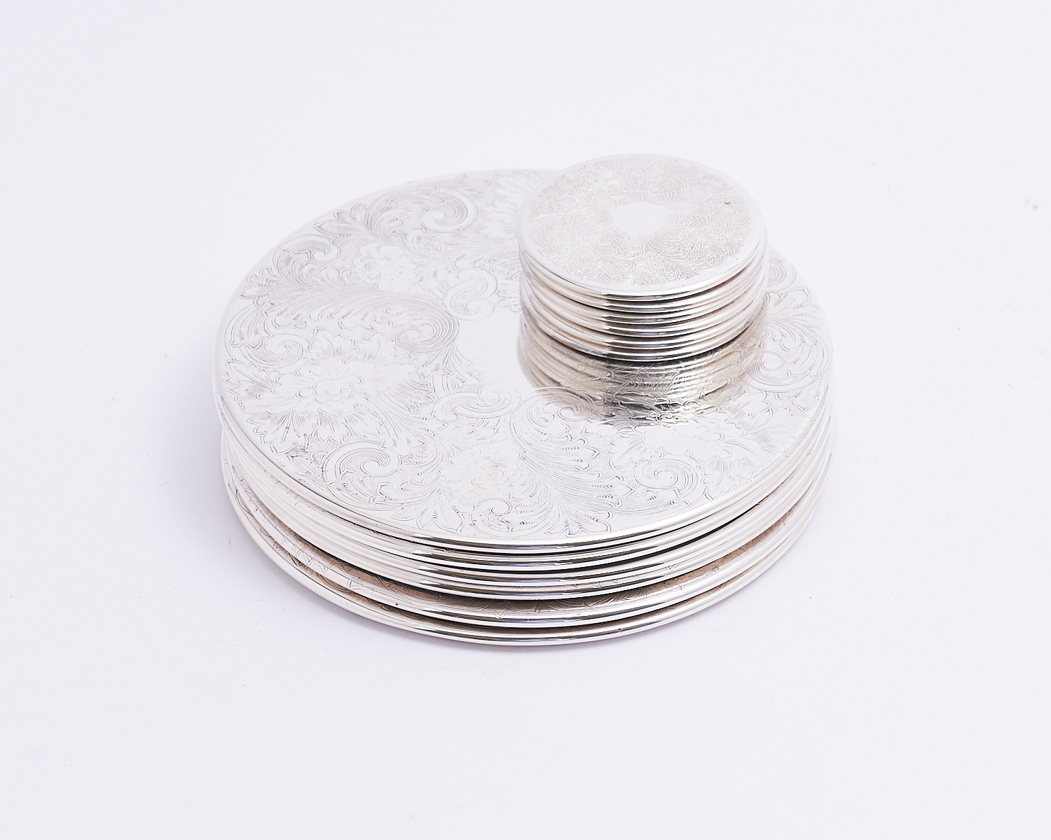 SIX ENGLISH GALLEON SILVERPLATED PLACEMATS AND SIX GALLEON DRINK COASTERS DIA.20.5CM, LEONARD JOEL LOCAL DELIVERY: SMALL