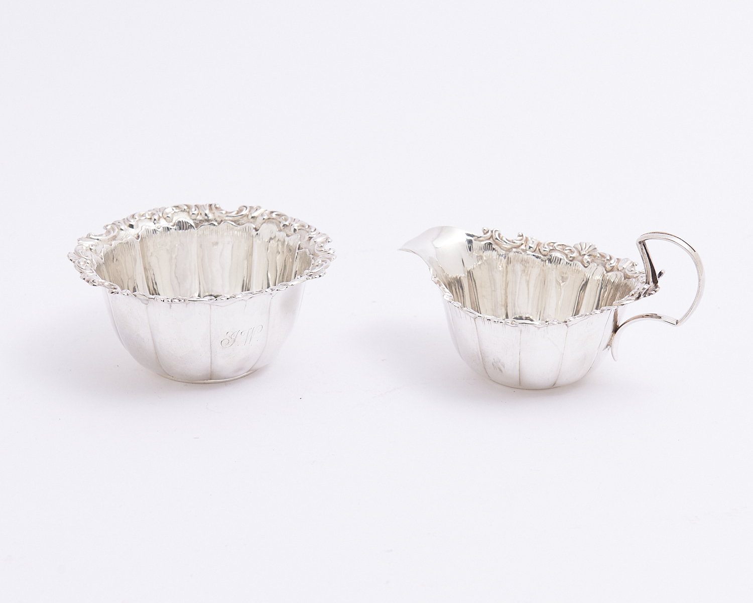 A STERLING SILVER EMBOSSED EDGE CREAMER AND SUGAR BOWL - 150 GRAMS DIA.11CM (LARGEST), LEONARD JOEL LOCAL DELIVERY: SMALL