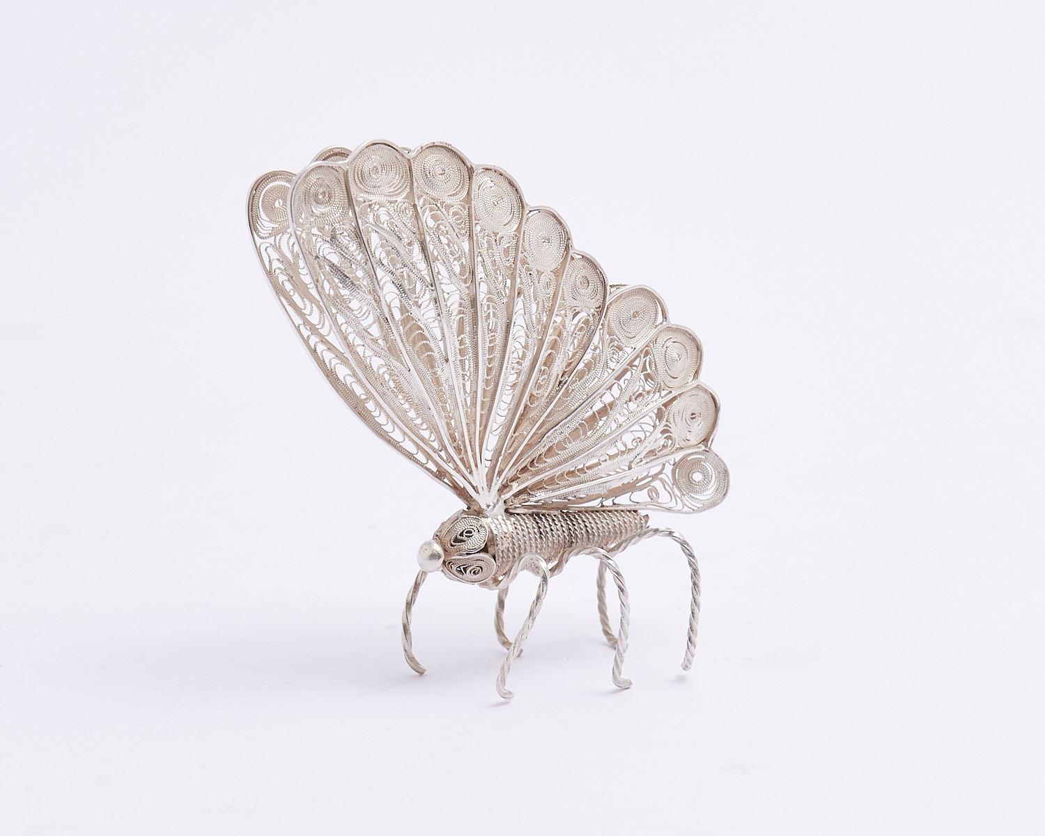 AN 800 SILVER FILIGREE BUTTERFLY FORM LETTER HOLDER - 66 GRAMS H.11CM, LEONARD JOEL LOCAL DELIVERY: SMALL