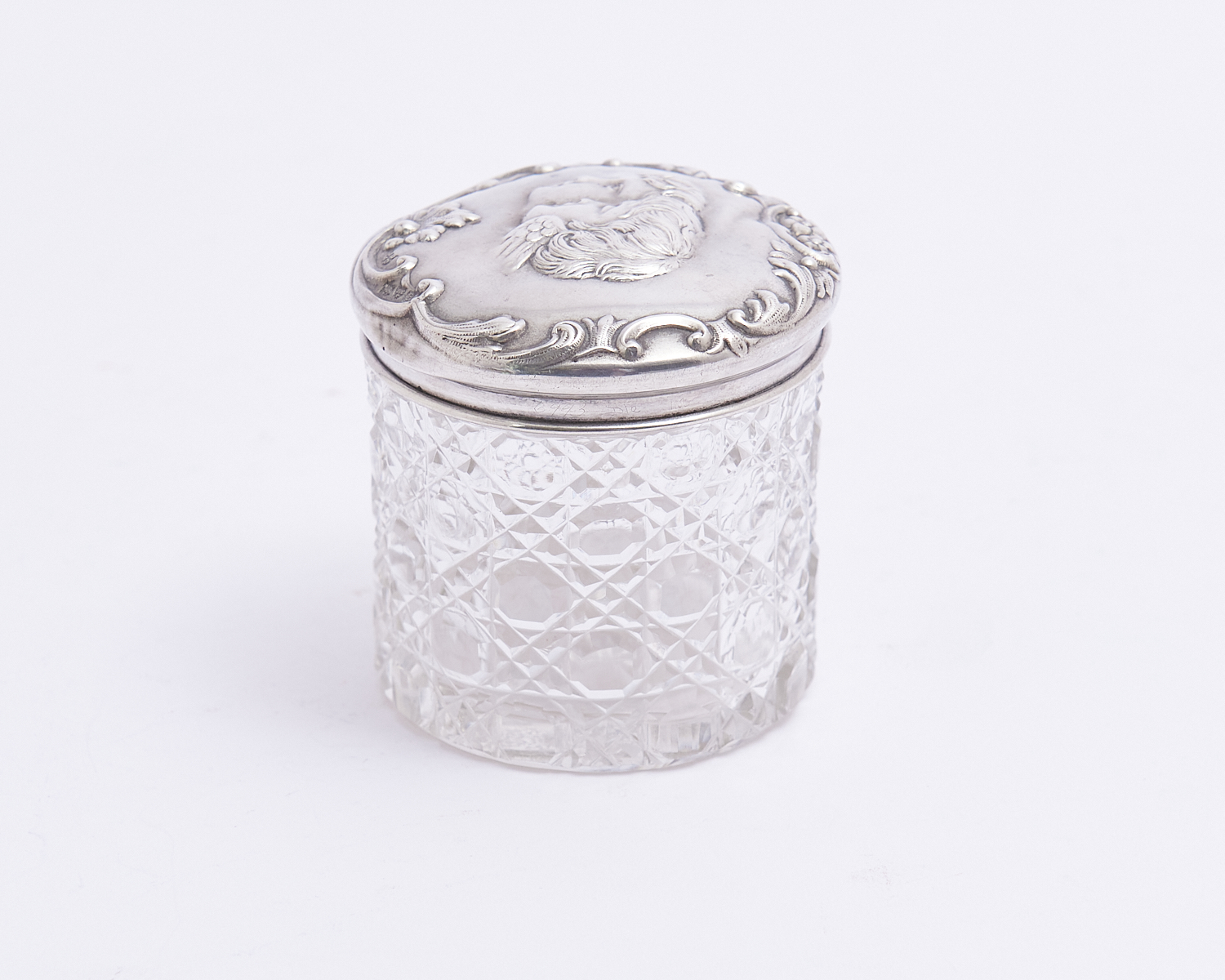 A STERLING SILVER REYNOLDS ANGELS LIDDED HOBNAIL CUT CRYSTAL JAR H.6.5CM, LEONARD JOEL LOCAL DELIVERY: SMALL