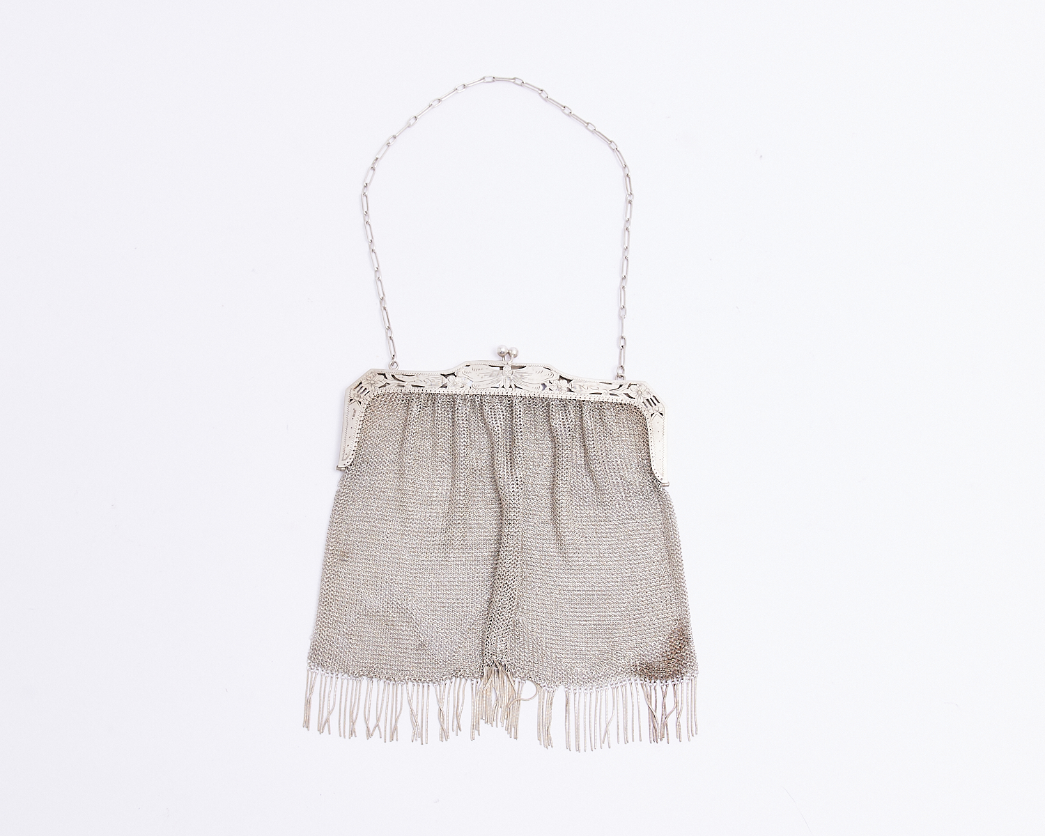 AN ART DECO 800 SILVER BUTTERFLY DECORATED MESH EVENING PURSE W.18.5CM, LEONARD JOEL LOCAL DELIVERY: SMALL