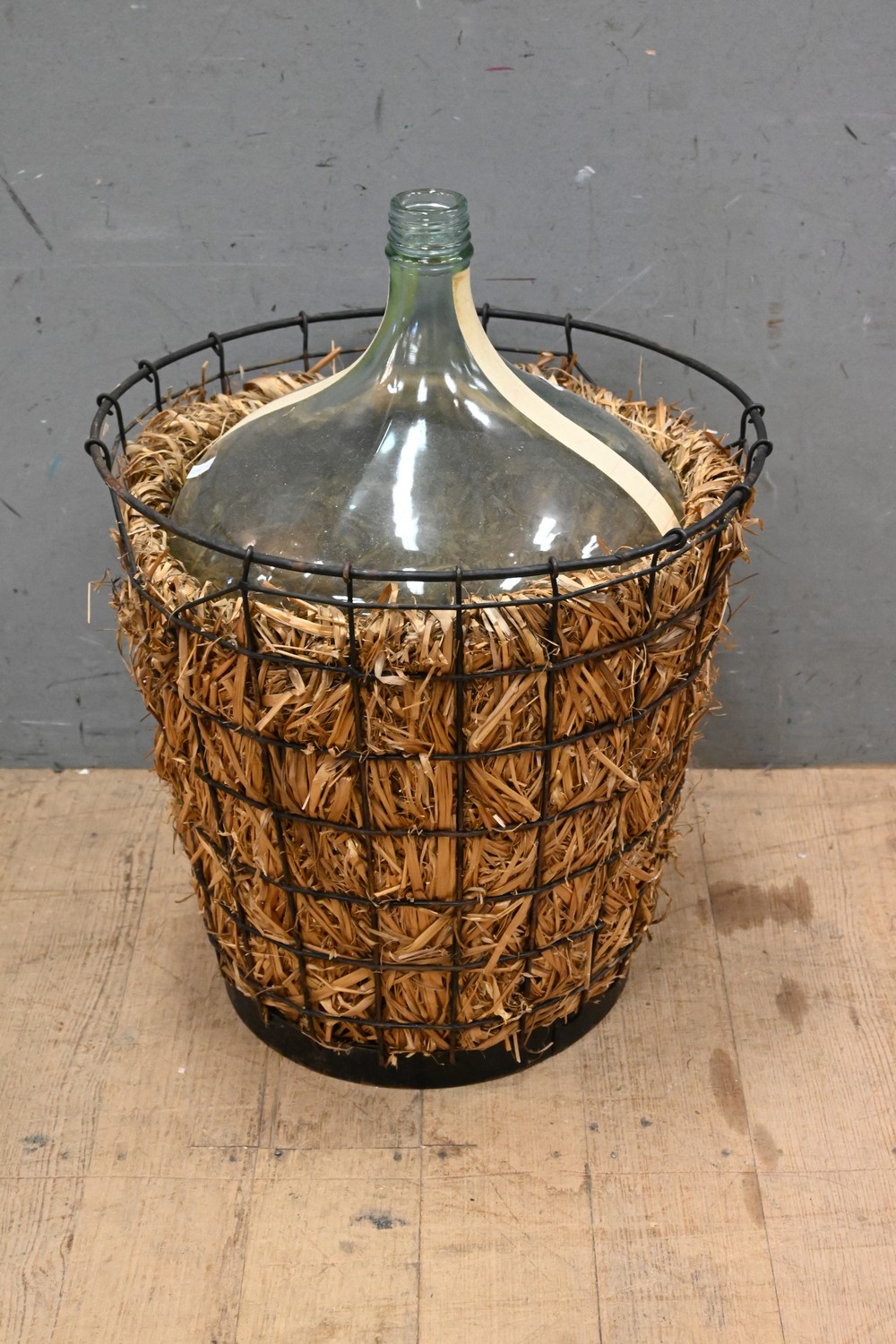 A DEMI JOHN IN METAL CASE (A/F) (H50 X D44 CM) (LEONARD JOEL DELIVERY SIZE: LARGE)