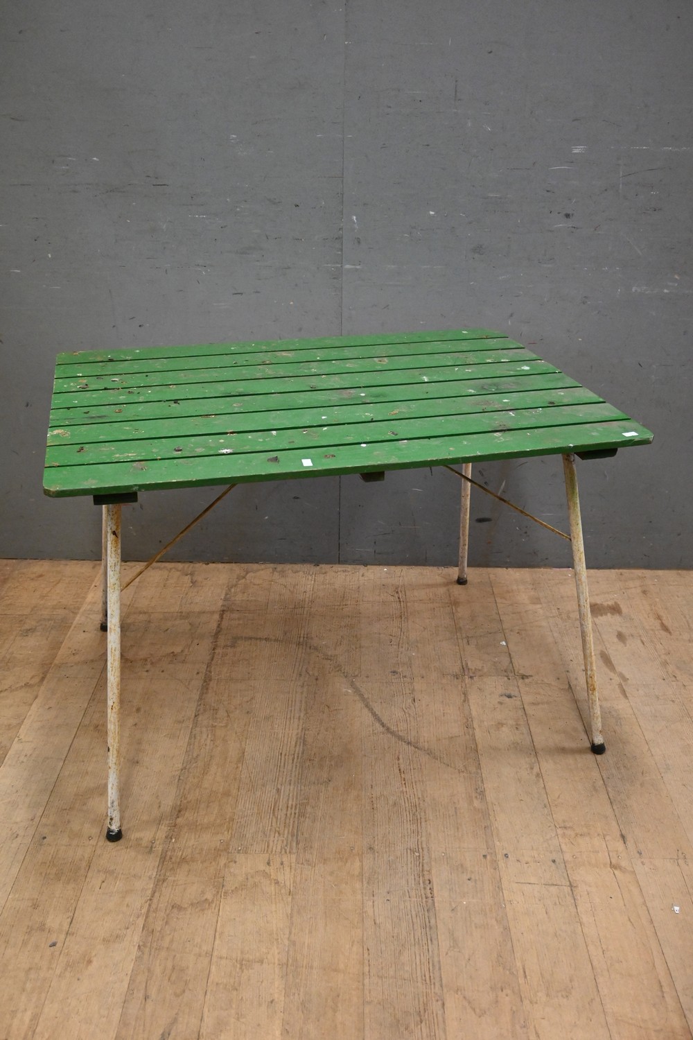 A MID CENTURY DANISH FOLDING PICNIC TABLE (A/F) (H64 X W92 X D64 CM) (LEONARD JOEL DELIVERY SIZE: LARGE)