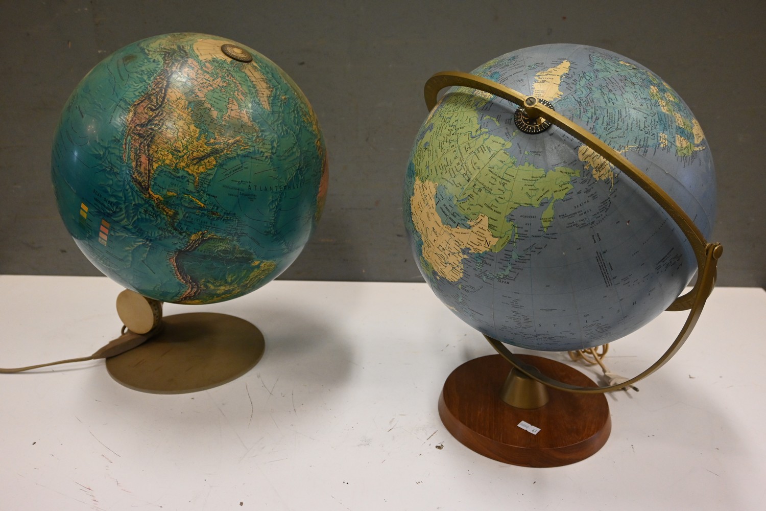 TWO MID CENTURY DANISH WORLD GLOBES (UNTESTED) (H42 CM) (LEONARD JOEL DELIVERY SIZE: MEDIUM)