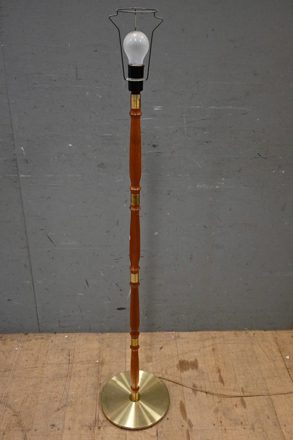A DANISH BRASS AND TIMBER STANDARD LAMP (A/F) (H129 CM) (LEONARD JOEL DELIVERY SIZE: LARGE)