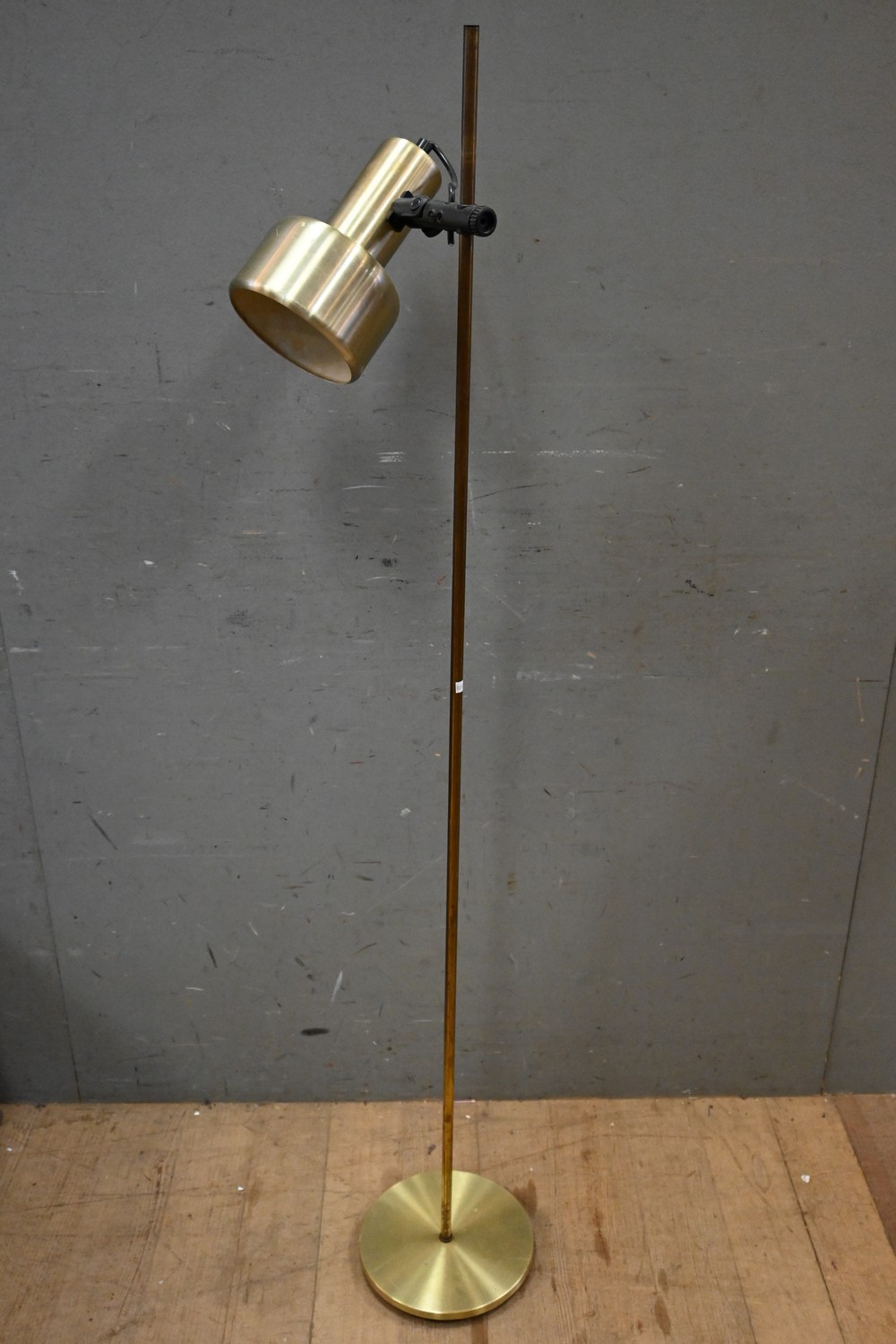 AN ADJUSTABLE BRASS DANISH STANDARD LAMP BY BELYSNING (A/F) (NO PLUG) (H142 CM) (LEONARD JOEL DELIVERY SIZE: MEDIUM)