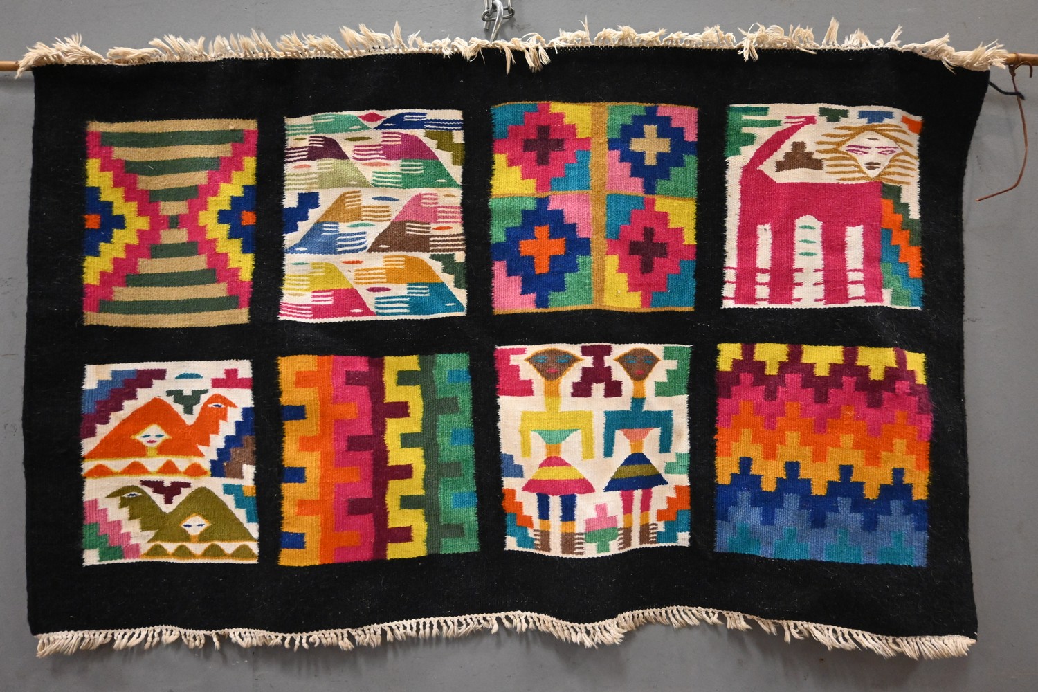 A DECORATIVE HANDMADE WOOL WALL HANGING (A/F) (69H X 105W CM) (LEONARD JOEL DELIVERY SIZE: MEDIUM)