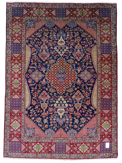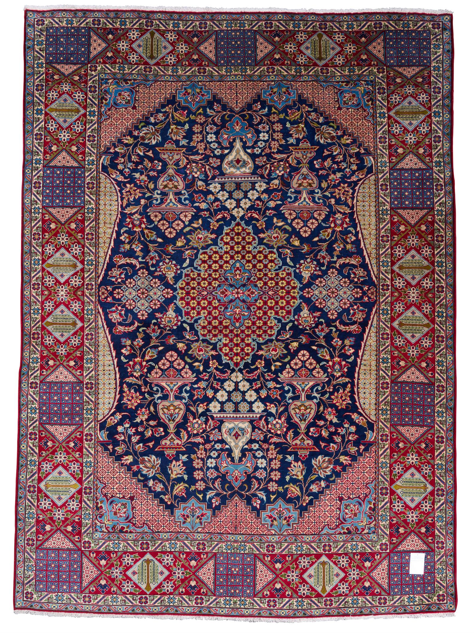 A STUNNING PERSIAN TABRIZ CARPET. 100% WOOL. DENSE PLUSH PILE. FINELY HAND KNOTTED WEAVE WITH TRADITIONAL DESIGN OF BOLD ELONGATED M...