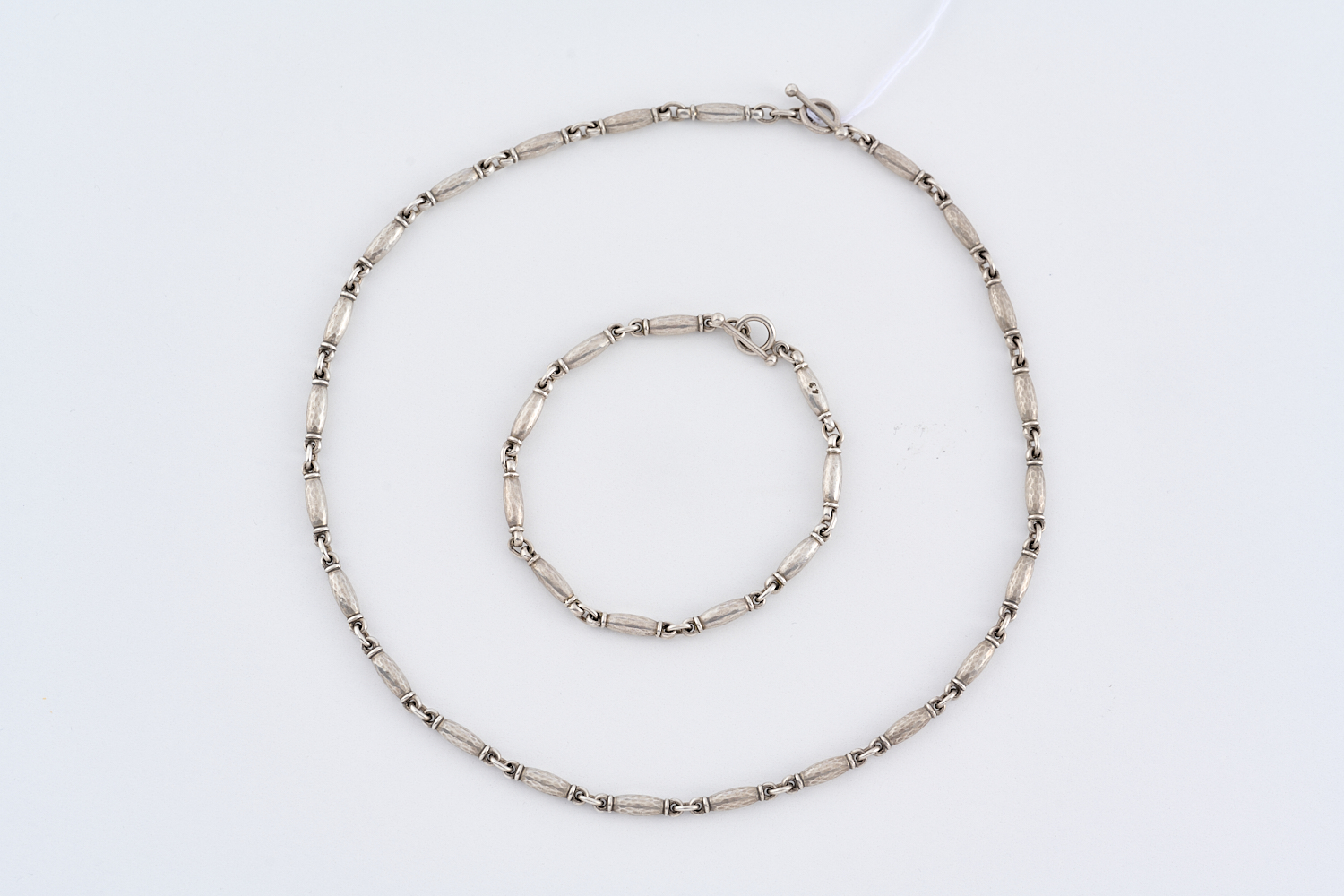 A NECKLACE AND BRACELET SUITE IN STERLING SILVER BY HENRY PILSTRUP FOR GEORG JENSEN, STYLE REFERENCES N.40 AND N.49