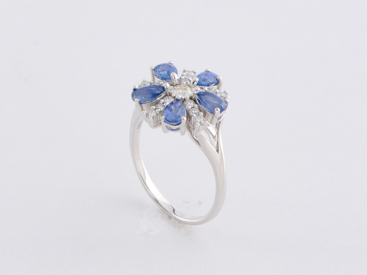 A DIAMOND AND CEYLONESE SAPPHIRE RING, IN 18CT WHITE GOLD, RING SIZE N, THE SAPPHIRES TOTALLING 1.47CTS, THE DIAMONDS TOTALLING 0.42CTS