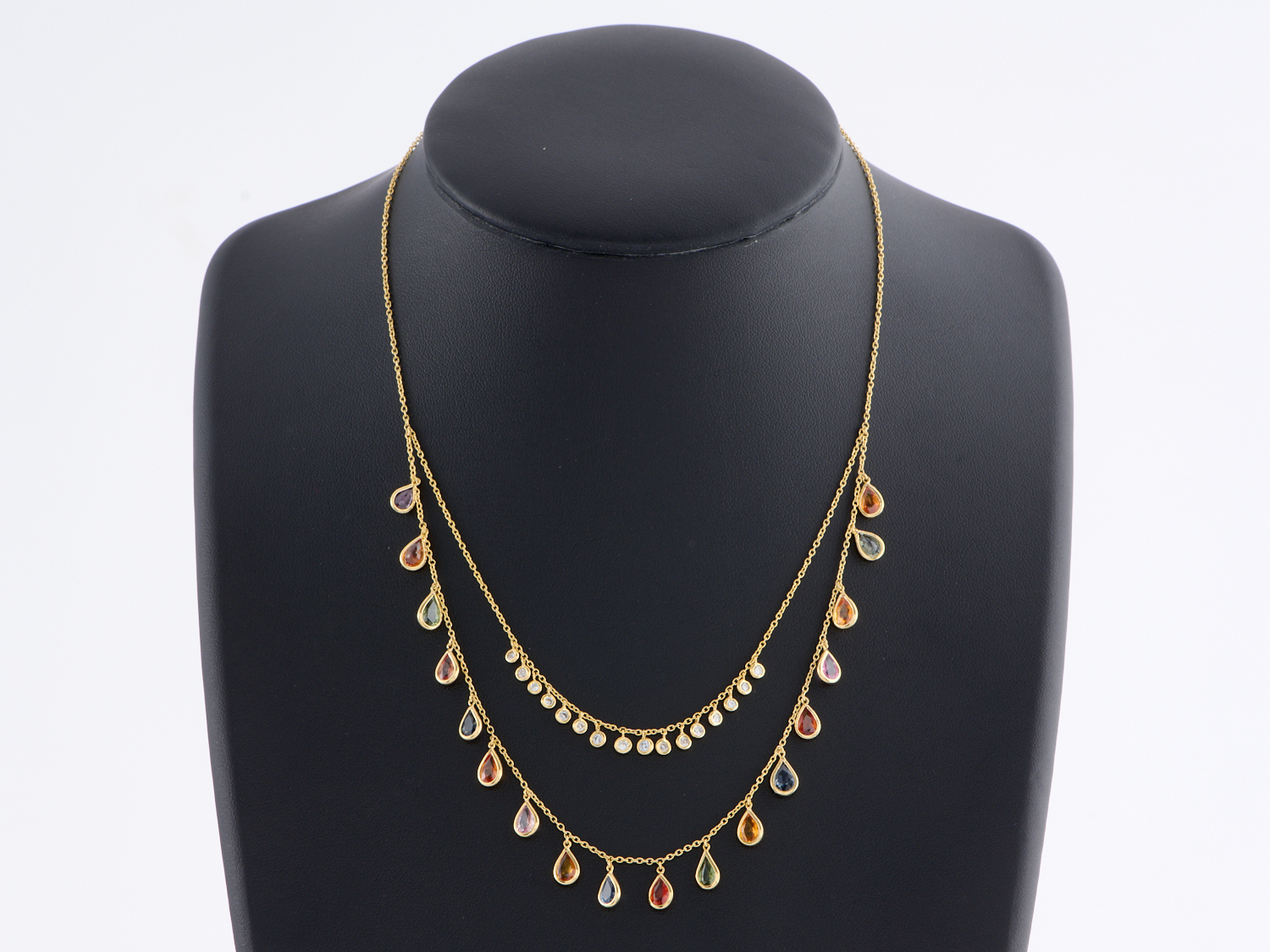 A DIAMOND AND MULTI COLOUR SAPPHIRE NECKLACE IN 14CT GOLD