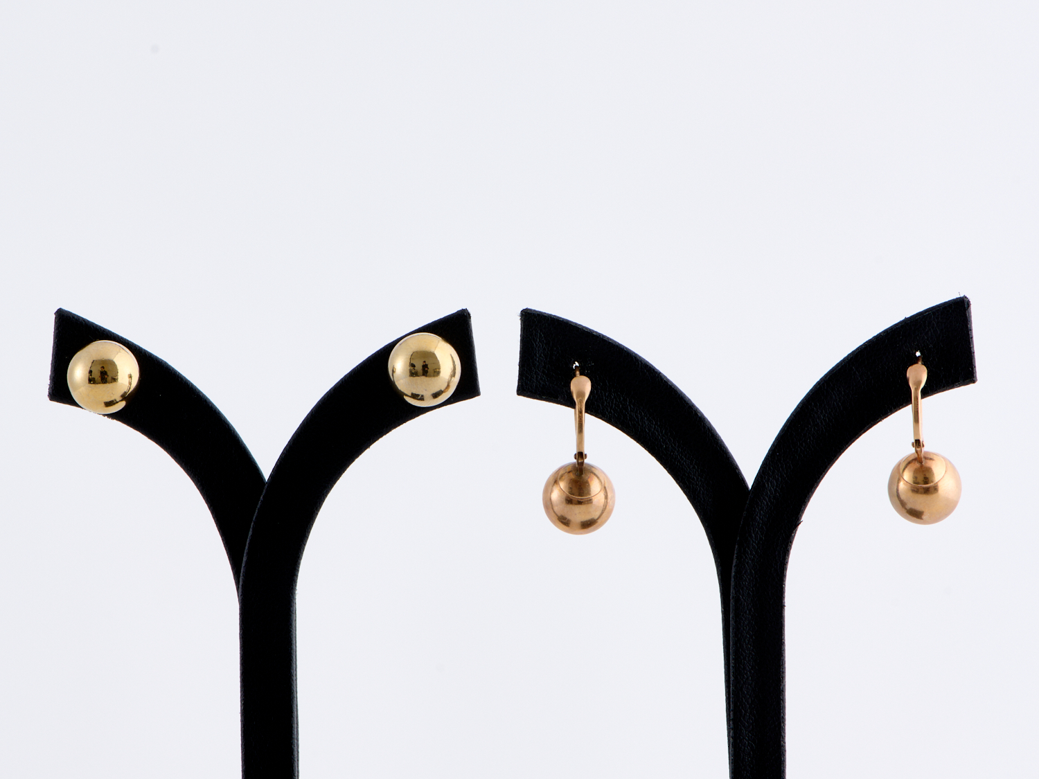 TWO PAIRS OF SPHERE EARRINGS, ONE IN 10CT GOLD (1.14GMS), AND ONE IN GOLD PLATE