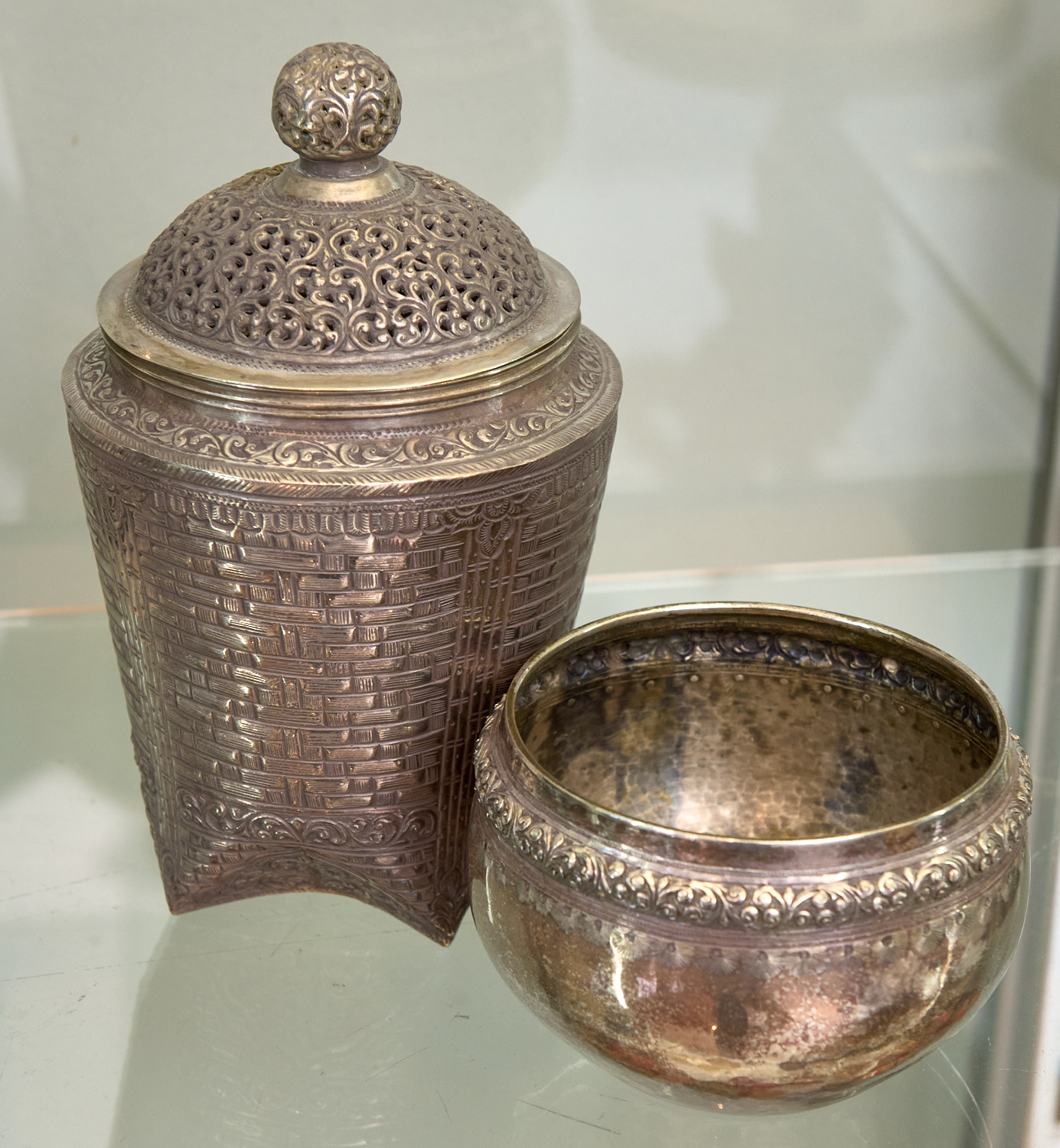 TWO BURMESE SILVER VESSELS H.16.5CM (TALLEST), LEONARD JOEL LOCAL DELIVERY: SMALL