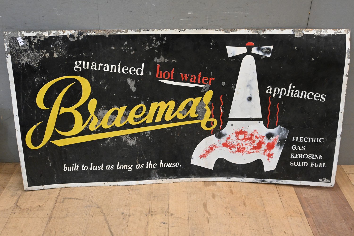 A VINTAGE BRAEMAR HOT WATER METAL SIGN (A/F) (91H X 180W CM) (LEONARD JOEL DELIVERY SIZE: LARGE)